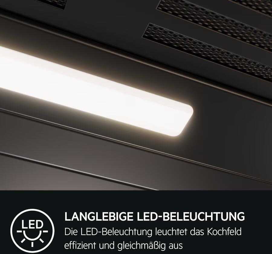 Erlebe eine hervorragende Luftqualität in der Küche mit den AEG Extraction Tech Pro Dunstabzugshauben. Ausgestattet mit unserem leistungsstärksten Motor und verschiedenen Leistungsstufen saugt sie Kochdämpfe effizient ab und sorgt so für eine frische Kochumgebung.