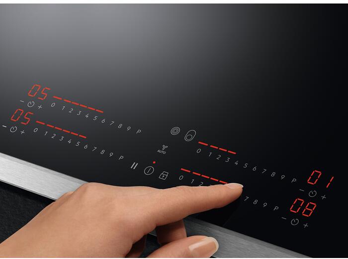 - ÖKO-Timer mit Restwärme Energie sparen - der ÖKO-Timer macht es möglich, indem er bereits vor Ablauf der eingestellten Zeit die Kochzone deaktiviert. So wird die vorhandene Restwärme effizient genutzt.