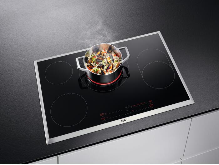 AEG HK857870XB Autarkes Glaskeramikkochfeld, 76,6 cm breit, OptiFit Frame, Öko-Timer, Kindersicherung, Edelstahlrahmen, schwarz