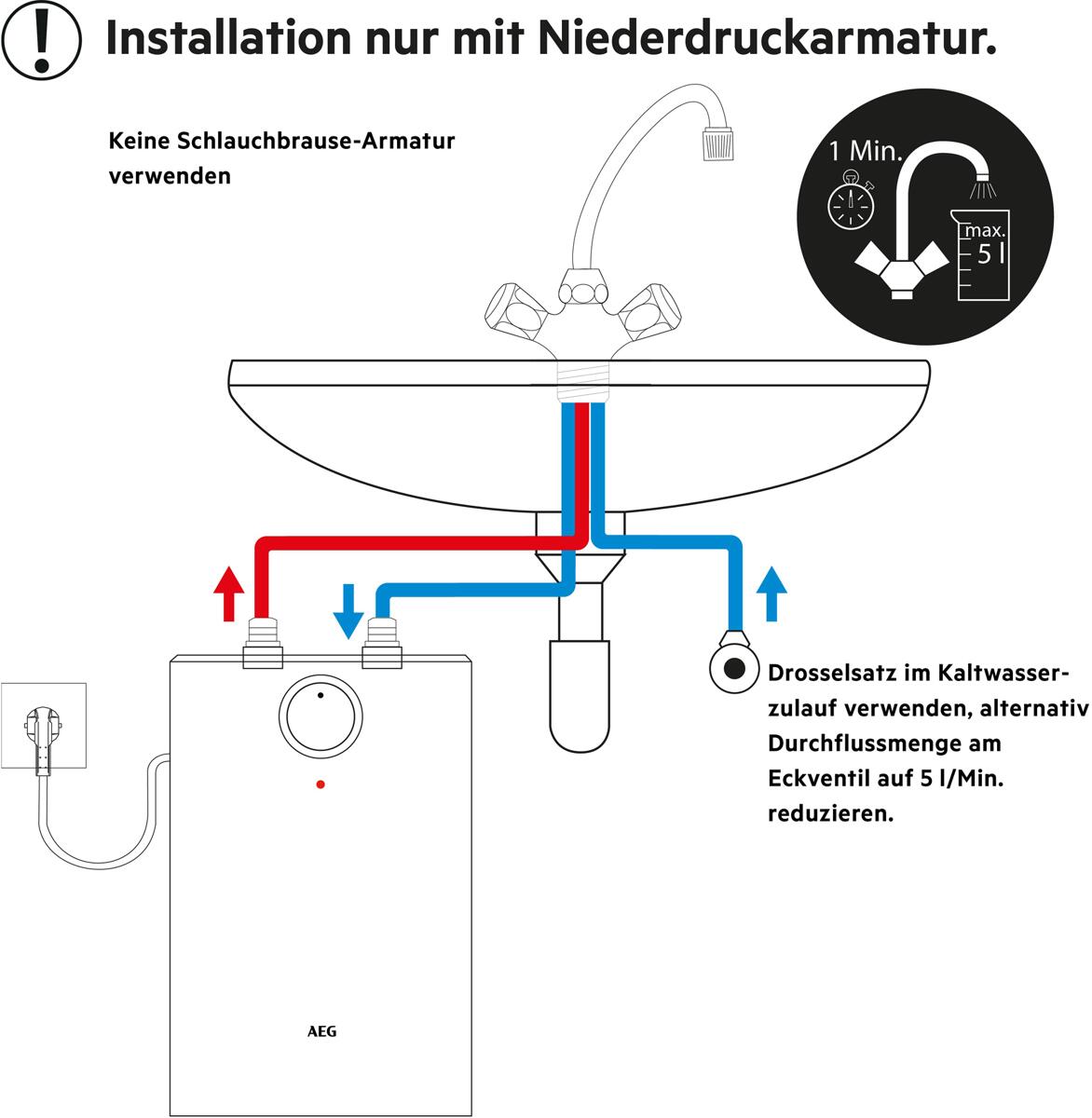 - Installation und Verwendung nur mit einer Niederdruckarmatur