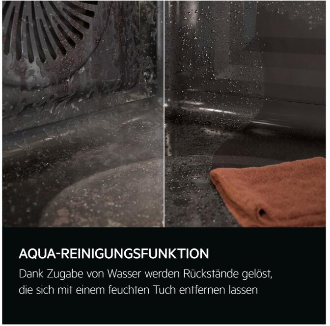 - Aqua-Reinigungsfunktion: Natürliche Reinigung durch Dampf.