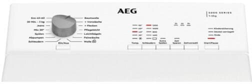 AEG LTR5N30268 6kg Toplader Waschmaschine, 40 cm breit, 1200 U/Min, AquaStop, Startzeitvorwahl, Kindersicherung, Nachlegefunktion, weiß