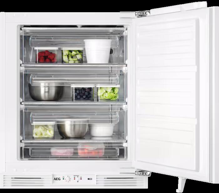 AEG OAB6I82EF Einbau Gefrierschrank, Nischenhöhe 82 cm, 95 L, Festtürtechnik, SpaceSmart Combo, OptiSpace, Electronic Control, Frostmatic, unterbaufähig, weiß