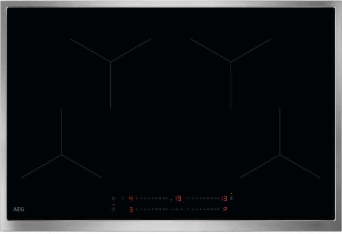 AEG OIO84A00XB Autarkes Induktionskochfeld, 76,6 cm breit, Timer, Kindersicherung, Verriegelungsfunktion, Hob²Hood, Edelstahlrahmen