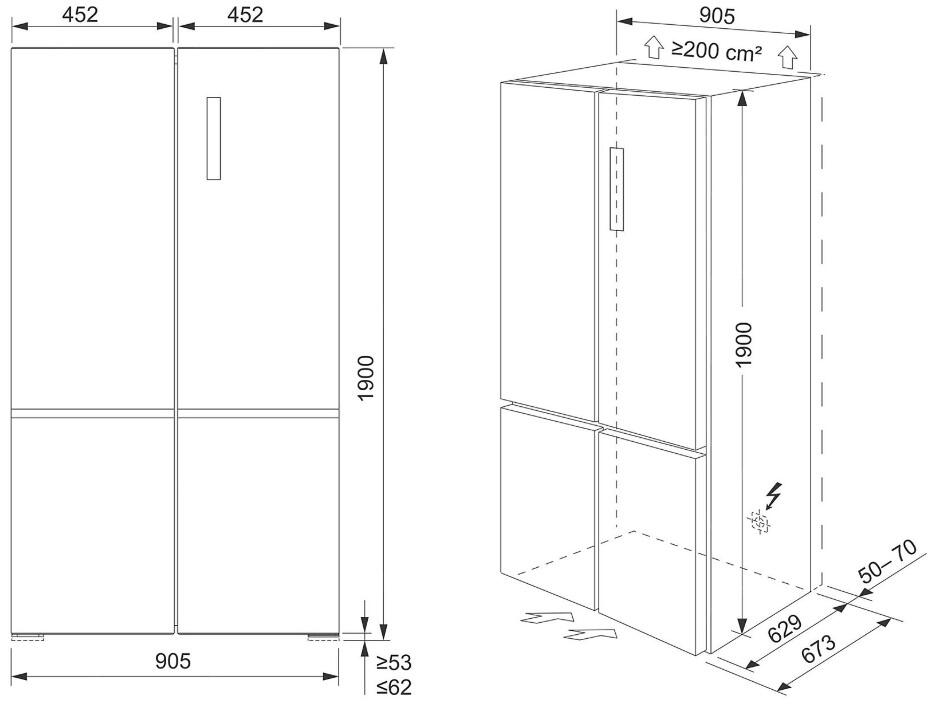 - Gerätemaße HxBxT (mm): 1900x905x673
