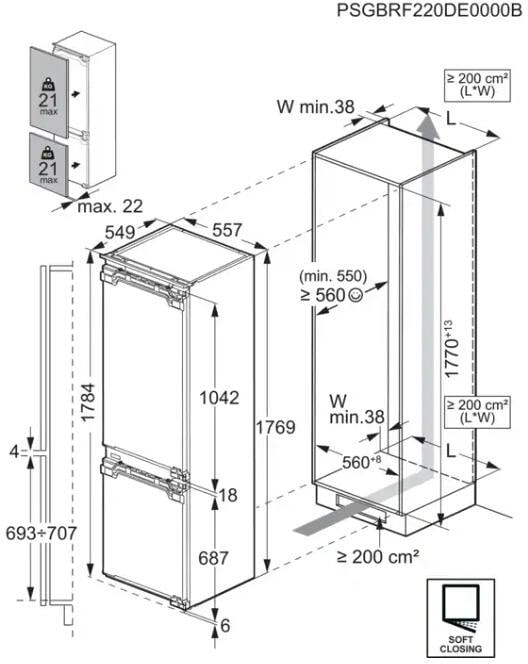 - Einbaumaße HxBxT (mm): 1780x560x550