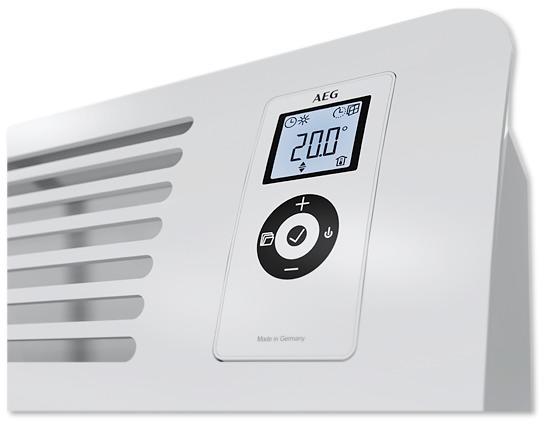 Der Wandkonvektor zeichnet sich durch seine optimale Bedienfreundlichkeit aus. Er ist mit einem großem, gut ablesbaren Display ausgestattet. Die gewünschte Raumtemperatur ist am Bedienteil von + 5 bis + 30 °C in 0,5°C Schritten einstellbar. Zu den weiteren smarten Funktionen des Gerätes zählen ein Wochentimer mit zwei voreingestellten und einem individuell progammierbaren Zeitprogramm, ein 120-Minuten-Kurzzeittimer, die adaptive Regelung als Lernfunktion für zeitgenaues Erreichen der Komforttemperatur im Timerbetrieb sowie die "Offene-Fenster-Erkennung" zur Vermeidung von Energieverschwendung. Der Wandkonvektor WKL Comfort ist von einem widerstandsfähigen Metallgehäuse mit einer 3 mm starken Front aus Aluminium umgeben.