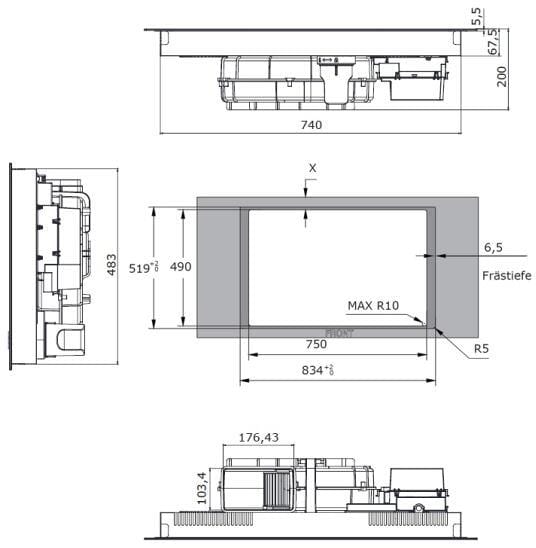 - Ausschnittmaß (BxT): 750 x 490 mm