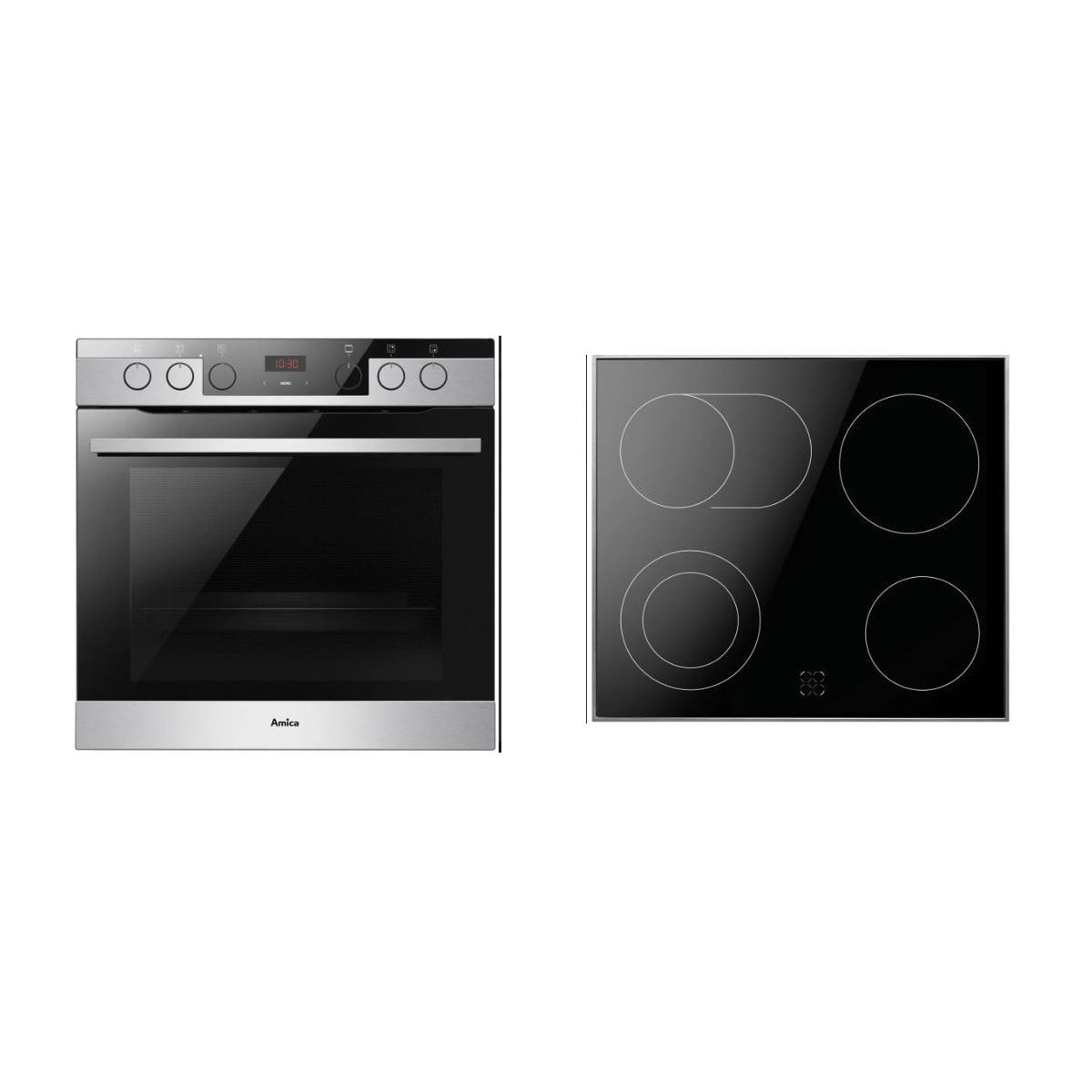 Amica EHCX 933 600 E Einbauherd-Set mit Glaskeramikkochfeld, 60 cm breit, 77L, versenkbare Knebel, 9 Backofenfunktionen, Restwärmeanzeige, schwarz/Edelstahl