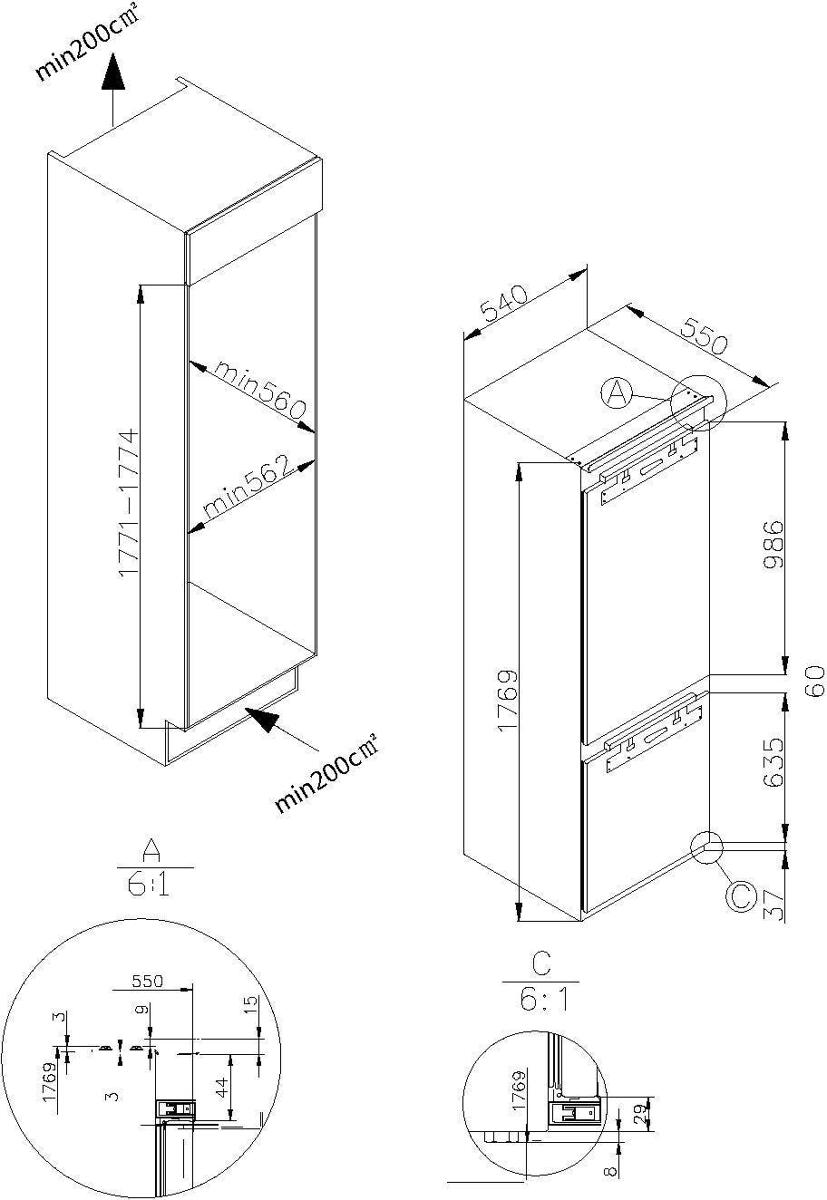 - Nische (HxBxT): 1771-1774 x 560 x 560 mm