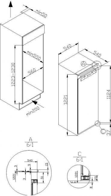 - Nische (HxBxT): 1223 1226 x 560 x 550 mm