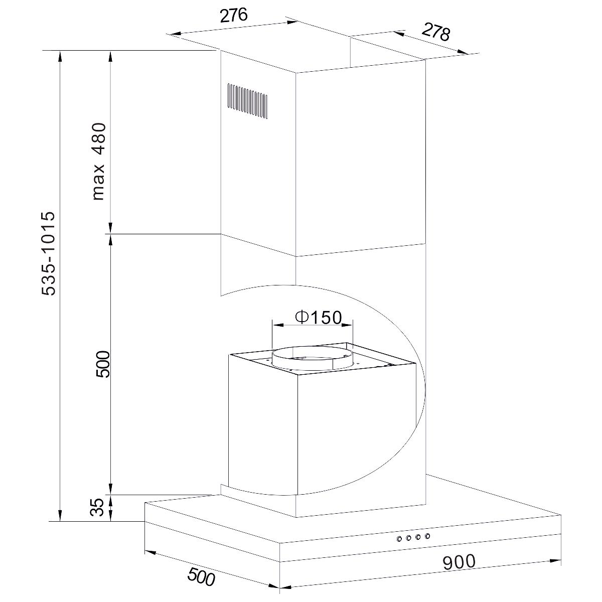 - Gerätemaß (HxBxT): 535,0-1015,0 x 900 x 500 mm