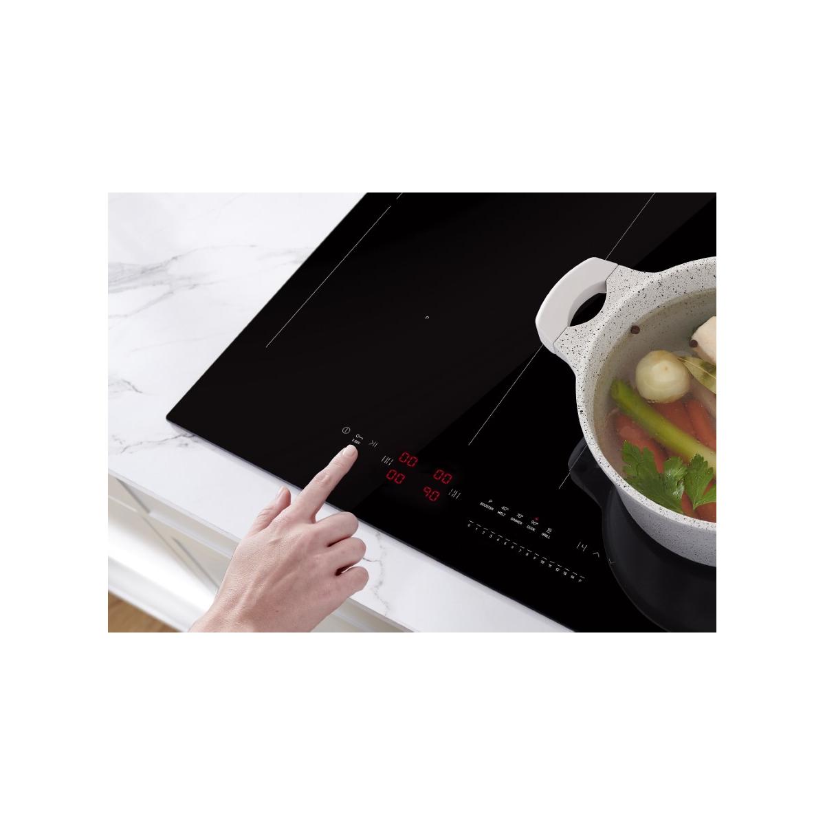 - Ein Abendessen für eine große Familie? Die AutoBridge-Funktion ermöglicht es Ihnen, in größeren Töpfen auf beiden Zonen gleichzeitig zu kochen! Das Kochfeld erkennt einen großen Topf und kombiniert die Bereiche automatisch zu einer Kochzone, die der Form des Topfes entspricht. Diese intuitive Lösung macht das Kochen schneller und effizienter!
