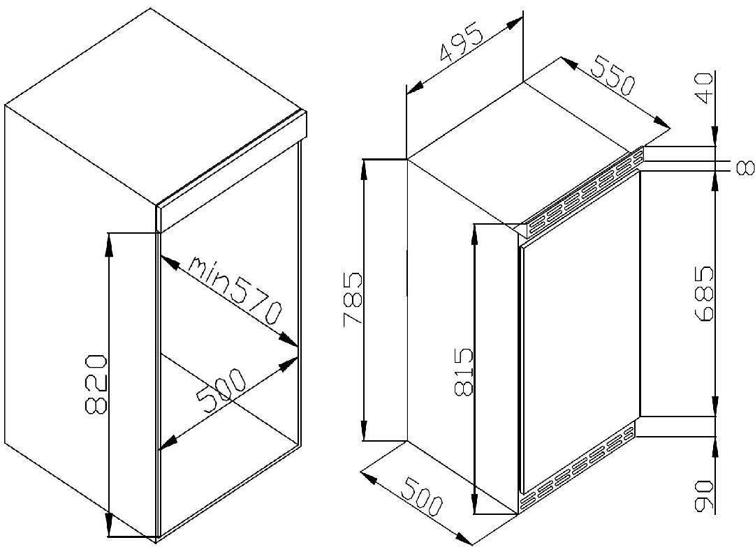 - Nische (HxBxT): 818-820 x 500 x 570 mm