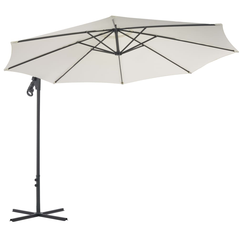 Dieser elegante Ampelschirm schafft nicht nur ein schattiges Plätzchen in Ihrem Garten, sondern bietet auch Schutz gegen schädliche UV-Sonnenstrahlen. Aus UV-beständigem und verblassfestem Polyester gefertigt, bietet dieser Sonnenschirm optimalen Schutz gegen schädliche Sonnenstrahlen und ist außerdem leicht zu reinigen. Es verfügt über einen stabilen Kreuzfuß, der für erhöhte Stabilität sorgt. Dank des robusten Stahlmasts und der 8 starken Schirmrippen ist der Sonnenschirm sehr stabil und langlebig. Dieser Sonnenschirm lässt sich dank des Kurbelmechanismus einfach öffnen und schließen. Der Artikel ist leicht zu montieren. Bitte beachten: Wir empfehlen, die Schirmbespannung mit einem Imprägnierspray zu behandeln, wenn es starken Regenfällen ausgesetzt ist.