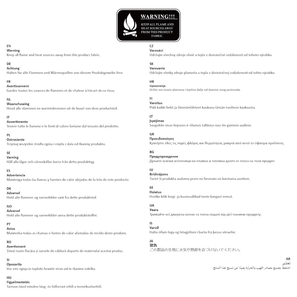 Achtung Halten Sie alle Flammen und Wärmequellen von diesem Produktgewebe fern.
