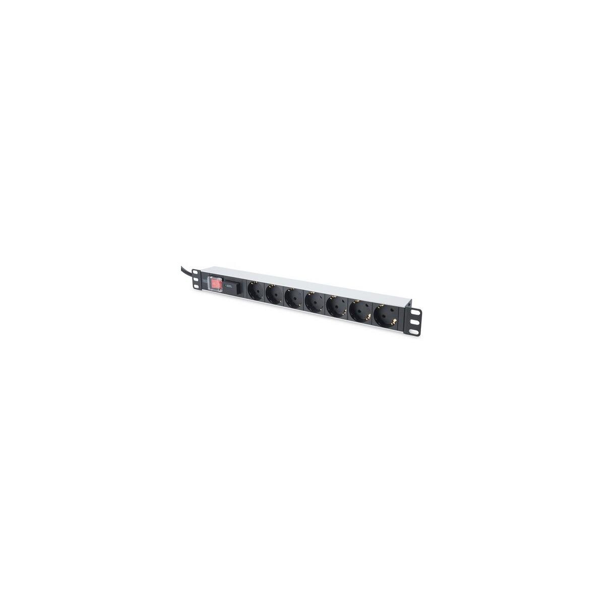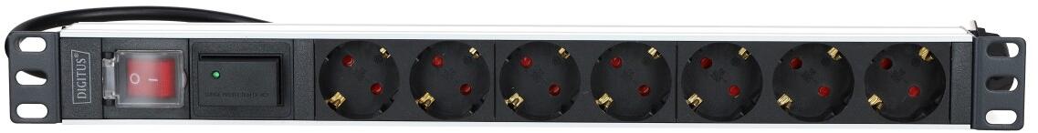 1HE Aluminium Steckdosenleiste, Rack Mount, 16A Plug, 250VAC 50/60Hz, 7-fach, mit Schalter Sichere und professionelle Stromversorgung im 19" Bereich - Perfekte Stromverteilung für Ihr Netzwerk- und IT-Rack - Integrierter Überspannungsschutz schützt angeschlossene Verbraucher vor Überspannung. - Buchsen sind um 35° gedreht, dies bietet ein optimales Platzmanagement und einen einfachen Zugriff - Kompakte Bauweise, 19" 1HE Gehäuse Die DIGITUS® Steckdosenleisten sind die perfekte Lösung für Ihren Netzwerk- oder Serverschrank. Hinsichtlich der Stromverteilung erfüllt die PDU Anforderungen vieler Anwendungen in der IT, Netzwerktechnik, Labore sowie auch den Heimbereich. Die Steckdosenleiste kann im 19" Bereich im Schrank platzsparend 1HE montiert werden. Ein Überspannungsschutz schützt die Verbraucher vor Überspannung. Der integrierte Schalter ist mit einer Abdeckung versehen, dies schützt vor unbeabsichtigten Abschalten der Dosenleiste.
