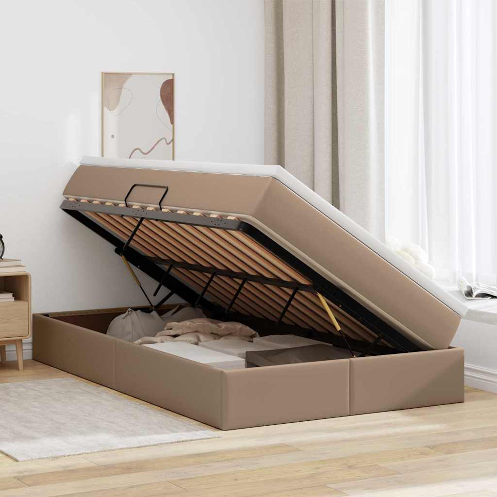 Das Stauraumbett mit Matratze ist ein modernes und schickes Möbelstück, das Platz spart und gleichzeitig höchsten Komfort bietet. Ideal für alle, die stylische und praktische Möbel mögen, verbindet dieses Bett schlichte Eleganz mit einem coolen Touch. Perfekt für moderne Räume, sind die klaren Linien einfach stylisch und sorgen für eine gemütliche Wohlfühl-Atmosphäre. Es ist nicht nur bequem, sondern auch super praktisch und bietet viel Stauraum, ohne Kompromisse beim Komfort einzugehen. Schlaf gut auf einer ausgewogenen Matratze und genieße einen ordentlichen Raum. Robuster Metallrahmen: Hochwertiges Metall sorgt für Stabilität und Langlebigkeit. Der feste Lattenrost bildet eine stabile Basis für erholsamen Schlaf und macht das Bett ideal für den täglichen Einsatz. Geräumiger Stauraum unter dem Bett: Dank hydraulischem Lift-Mechanismus gibt's viel Platz zum Verstauen. Perfekt für Bettwäsche, Kleidung oder andere Sachen, damit dein Schlafzimmer aufgeräumt bleibt. Elegantes Kunstleder-Finish: Das Bett ist mit hochwertigem Kunstleder bezogen, das ihm einen schicken Look verpasst. Es ist nicht nur robust und leicht zu reinigen, sondern verleiht deinem Schlafzimmer auch einen Hauch von Klasse. Bequeme Matratzen-Erfahrung: Die gemütliche Matratze aus Schaum und Taschenfedern sorgt für mittlere Festigkeit und unterstützt alle Schlafpositionen. Sie reduziert Bewegungsübertragung und bietet einen ausgewogenen Komfort für erholsame Nächte. Effizienter Montageprozess: Die Montage ist einfach, du brauchst nur zwei Personen und einen Schraubendreher. Die klaren Anleitungen sorgen für eine schnelle Einrichtung, so kannst du dein neues Bett ohne großen Aufwand genießen.