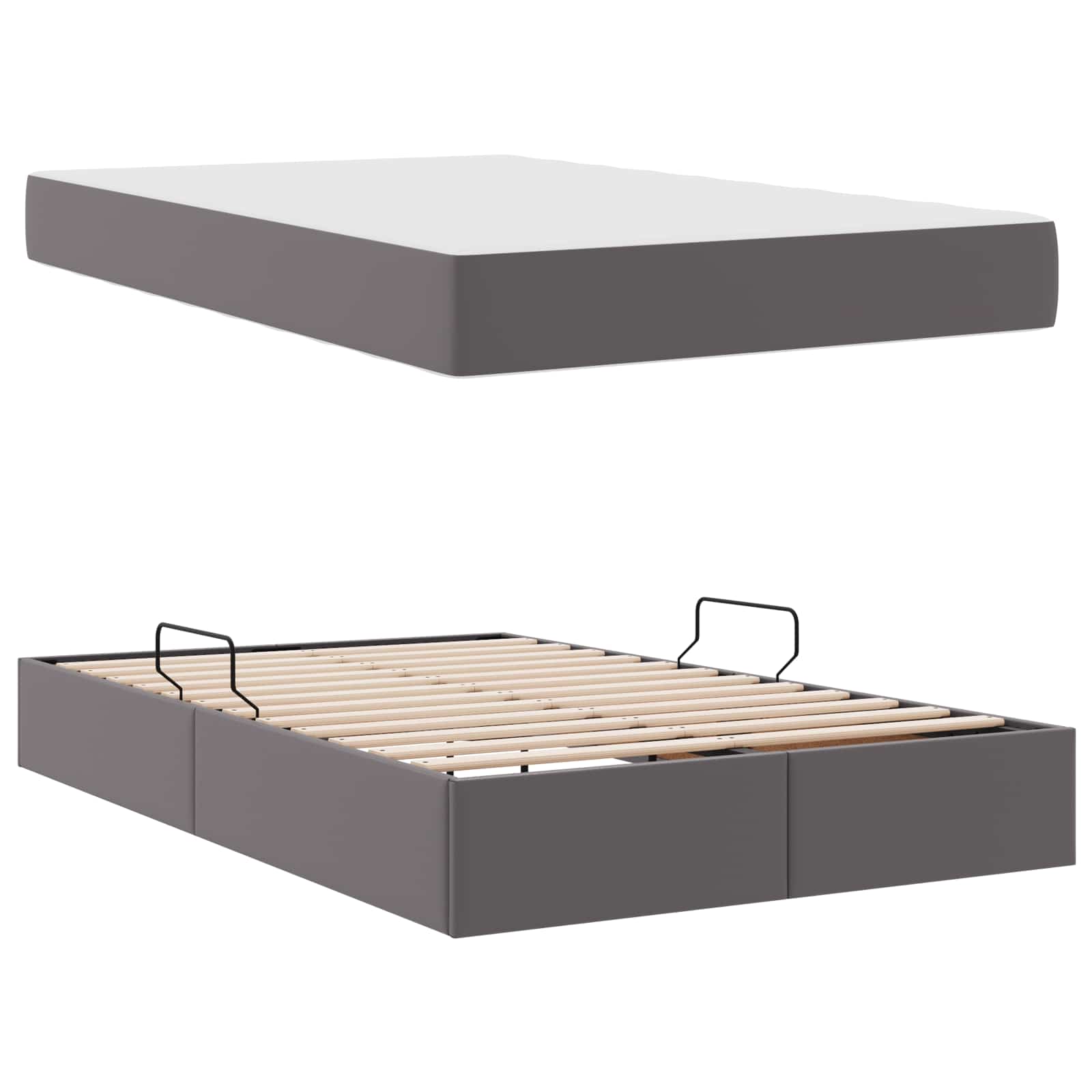 Dieses Stauraumbett mit Matratze kombiniert modernes Design mit Funktionalität und ist die ideale Lösung für dein Schlafzimmer. Der tolle, schlanke Rahmen hat einen hydraulischen Lift, der dir den Zugang zum Stauraum unter dem Bett erleichtert. Perfekt für alle, die Stil und Praktikabilität schätzen, passt dieses Stück wunderbar zu jeder modernen Schlafzimmerdekoration. Die klaren Linien und durchdachte Gestaltung machen es zu einer tollen Ergänzung für jeden Raum und steigern die visuelle Wirkung, während der Platz optimal genutzt wird. Hydraulisches Hebesystem Unkomplizierter Zugang zum geräumigen Stauraum unter dem Bett dank des hydraulischen Hebesystems. Der Liftmechanismus hebt die Matratze einfach an, damit Sachen ordentlich verstaut werden können. Perfekt, um Platz im Schlafzimmer zu sparen, besonders in kleinen Wohnungen. Schlanker Rahmen Dieses Bett hat ein minimalistisches Design und steht für das elegante Flair des modernen Stils. Die rechteckige Form bietet Stabilität, und das Metall sorgt für Langlebigkeit ? ideal für den täglichen Gebrauch. Luxuriöse Matratze Mit einer Kunstledermatratze, die mittelfest ist, bietet dir das Stauraumbett guten Komfort und Unterstützung. Das Kunstleder sorgt dafür, dass deine Nächte luxuriöser werden, während es pflegeleicht bleibt. Taschenfederkern Die Matratze hat ein Taschenfederkernsystem, das Bewegungen minimiert und dir ungestörten Schlaf garantiert. Die einzelnen Federn passen sich an deinen Körper an und sorgen für mehr Komfort in jeder Schlafposition. Einfach zu montieren Für die Montage brauchst du nur zwei Personen und einen Standard-Schraubendreher, was alles unkompliziert macht. Die durchdachte Bauweise sorgt dafür, dass du flott die Vorteile und Funktionen des Bettes ohne viel Aufwand genießen kannst.