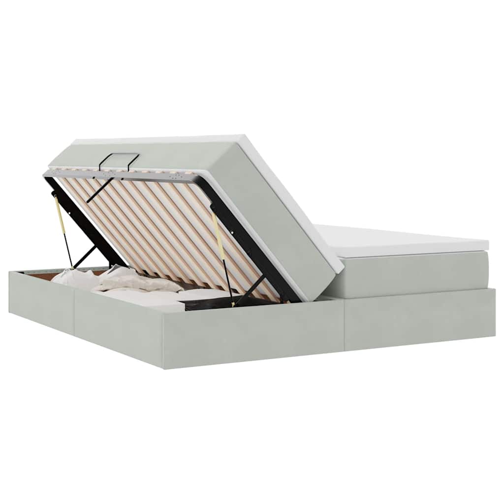Dieses moderne Stauraumbett mit Matratze kombiniert stylische Eleganz mit Funktionalität und macht es zu einem echten Hingucker in jedem Schlafzimmer. Mit seinen klaren Linien und dem minimalistischen Aussehen bietet es sowohl einen schicken Look als auch praktische Vorteile, perfekt für alle, die den Platz optimal nutzen wollen. Der hydraulische Hebemechanismus ermöglicht schnellen Zugang zu einem großen Stauraum unter dem Bett, ideal zum Organisieren von Dingen, ohne dabei den Style zu verlieren. Das neutrale Design macht es zu einem vielseitigen Möbelstück, das in verschiedene Schlafzimmerdeko passt. Coole Samtmatratze: Die Matratze, die in luxuriösem Samt eingekleidet ist, bietet tollen Komfort und einen Hauch von Eleganz. Der mittlere Härtegrad sorgt für ein ausgewogenes Gefühl und ist für alle Schlafpositionen geeignet. So schlaft ihr ruhig und verleiht dem Schlafzimmer eine schicke Note. Praktischer Hydraulikmechanismus: Das innovative hydraulische System des Bettes hebt die Matratze ganz leicht an, um viel Stauraum darunter freizulegen. Perfect, um Bettwäsche, saisonale Kleidung oder andere Dinge ordentlich und griffbereit zu halten, während es für ein aufgeräumtes Umfeld sorgt. Robustes Metallgestell: Das Gestell aus strapazierfähigem Metall sorgt für Stabilität und Langlebigkeit. Es unterstützt die Matratze und bietet Halt für verschiedene Gewichte und Anwendungen. Damit ist das Gestell die zuverlässige Basis für die moderne Form des Bettes und garantiert langfristige Zufriedenheit. Schicke Optik: Mit der minimalistischen Bauweise, die klare Linien und schlichte Eleganz zeigt, fügt sich das Bett nahtlos in moderne Stile ein. Es ergänzt das Raumdesign mit einem stilvollen, unaufdringlichen Look und wird somit zum echten Blickfang in jedem modernen Interieur. Platzsparendes Design: Dieses Bett nutzt den Raum clever aus. Mit der eingebauten Stauraumlösung schafft es Platz in Schränken und Kommoden und ist die perfekte Lösung für städtische Wohnungen, in denen man jeden Quadratmeter optimal nutzen muss.