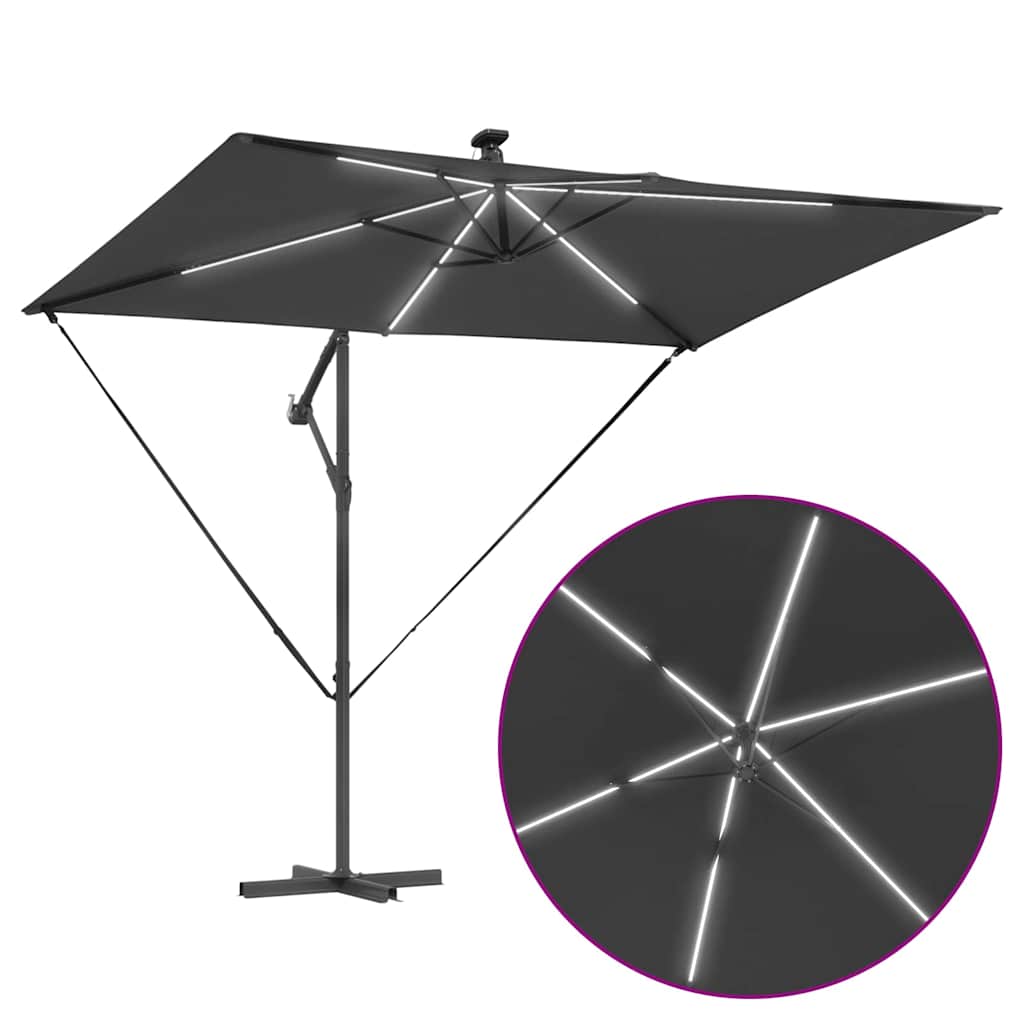 Der freischwingende Sonnenschirm vereint stylische Praktikabilität und ist perfekt, um deinen Garten, Balkon oder deine Terrasse aufzupimpen. Mit seinem modernen, schlichten Design passt er überall rein. Sein eleganter Look und die glatte Oberfläche machen ihn nicht nur schön, sondern bieten auch verlässlichen Schatten ? ideal zum Chillen oder für Partys mit Freunden. Materialien: Aus pulverbeschichtetem Stahl, stabil und rostfrei. Das Polyester-Dach bietet tollen UV-Schutz und bleibt bei jedem Wetter fresh. Er ist für lange Lebensdauer und gute Leistung gemacht. Enthaltene Komponenten: Mit solarbetriebenen LED-Lichtern, die nachts für schönes Licht sorgen, ohne Stromkosten. Die praktische Handkurbel macht das Öffnen und Schließen super einfach, und die kippbare Funktion lässt sich problemlos anpassen. Features / Funktion / Design: Winddicht, also keine Sorge bei windigem Wetter. Der Luftschlitz sorgt dafür, dass die Luft zirkuliert und das Dach nicht umgedreht wird. Mit den solarbetriebenen Lichtern schaffst du eine tolle Atmosphäre, perfekt zum Abhängen oder Essen am Abend. Empfohlene Anwendungen: Ideal für Gärten, Balkone und Terrassen. Eine tolle Lösung für jeden Außenanlass. Ob Tag oder Nacht, der Schirm ist super für alles ? vom entspannten Chillen bis zu lebhaften Partys. Pflege & Wartung: Um deinen Schirm schön zu halten, vermeide scharfe Reiniger und verwende eine Abdeckung, wenn er nicht gebraucht wird. Ein bisschen wasserabweisendes Spray ab und zu hilft, ihn gegen Feuchtigkeit zu schützen.