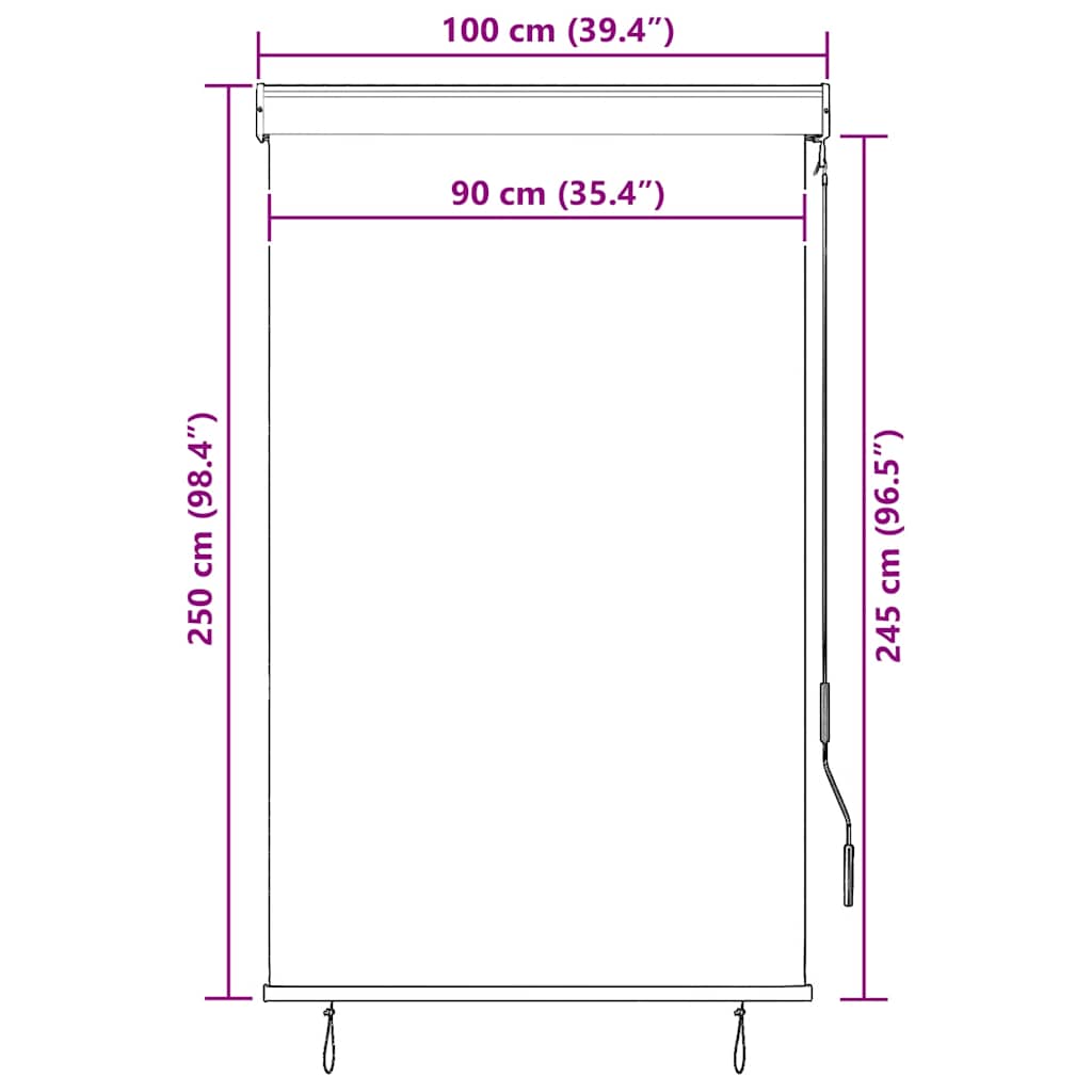 Suchen Sie nach einem Außenrollo für Ihren Balkon, Garten oder Ihre Terrasse? Dieses handbetätigte Außenrollo ist die optimale Wahl für Sie! Aus atmungsaktivem Polyestergewebe gefertigt und mit PA-Beschichtung versehen, sorgt diese Senkrechtmarkise für eine gute Luftzirkulation und kann die meisten schädlichen Strahlen blockieren. Es bietet tagsüber Privatsphäre auf der Terrasse, im Garten oder in anderen Außenbereichen. Die Aluminium-Frontstange und die Stahlkassette verhindern ein Durchhängen und Biegen. Dank des Handkurbelmechanismus lassen sich die Jalousien leicht öffnen und einfahren. Das Outdoor-Rollo ist einfach zu montieren.