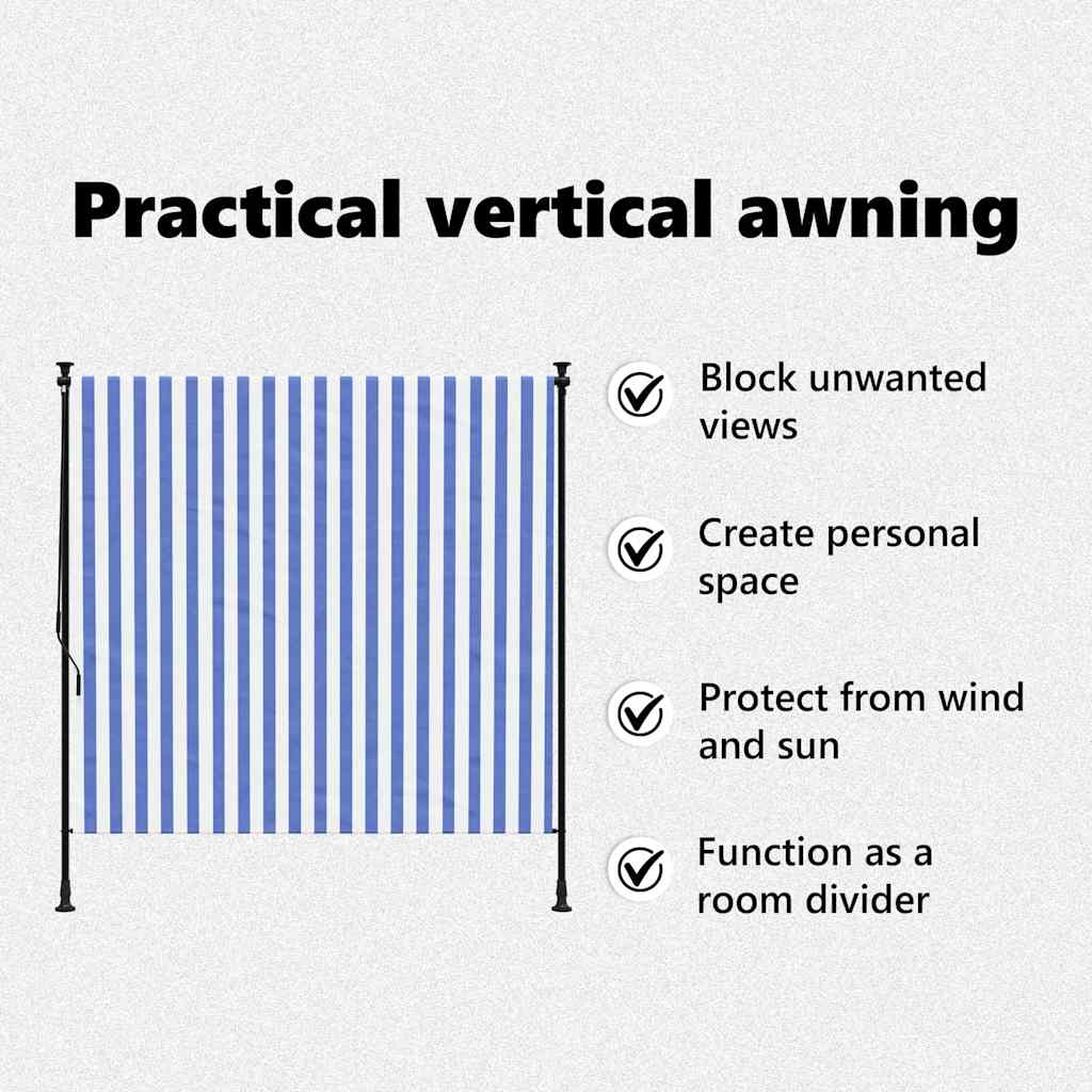Genieße ein kühles Getränk, eine Leckerei oder ein gutes Gespräch mit Freunden auf deiner Terrasse, während du dich hinter diesem Außenrollo entspannst! Langlebiges Material: Der Rahmen des Sichtschutzes ist aus Stahl gefertigt, der robust und langlebig ist. Der Stoff mit PU-Beschichtung ist UV-beständig. Das Rollo schützt deine Familie oder Gäste vor UV-Strahlen und blendendem Sonnenlicht. Einziehbar: Dank der Kurbel lässt sich das Rollo je nach Bedarf ein- und ausfahren. Er spendet im ausgefahrenen Zustand kühlenden Schatten und versperrt im eingefahrenen Zustand nicht die Sicht. Einstellbare Höhe: Die Höhe der Stützstangen kann zwischen 225 und 275 cm eingestellt werden, sodass es für verschiedene Deckenhöhen geeignet ist. Vielseitig einsetzbar: Das Außenrollo zeichnet sich durch ein schlichtes, stilvolles Design aus, das sich harmonisch in dein Zuhause oder in Geschäftsräume einfügt. Es lässt sich in den unterschiedlichsten Bereichen einsetzen, sei es auf Balkonen, Terrassen, in Gärten, Restaurants, Cafés oder Geschäften.