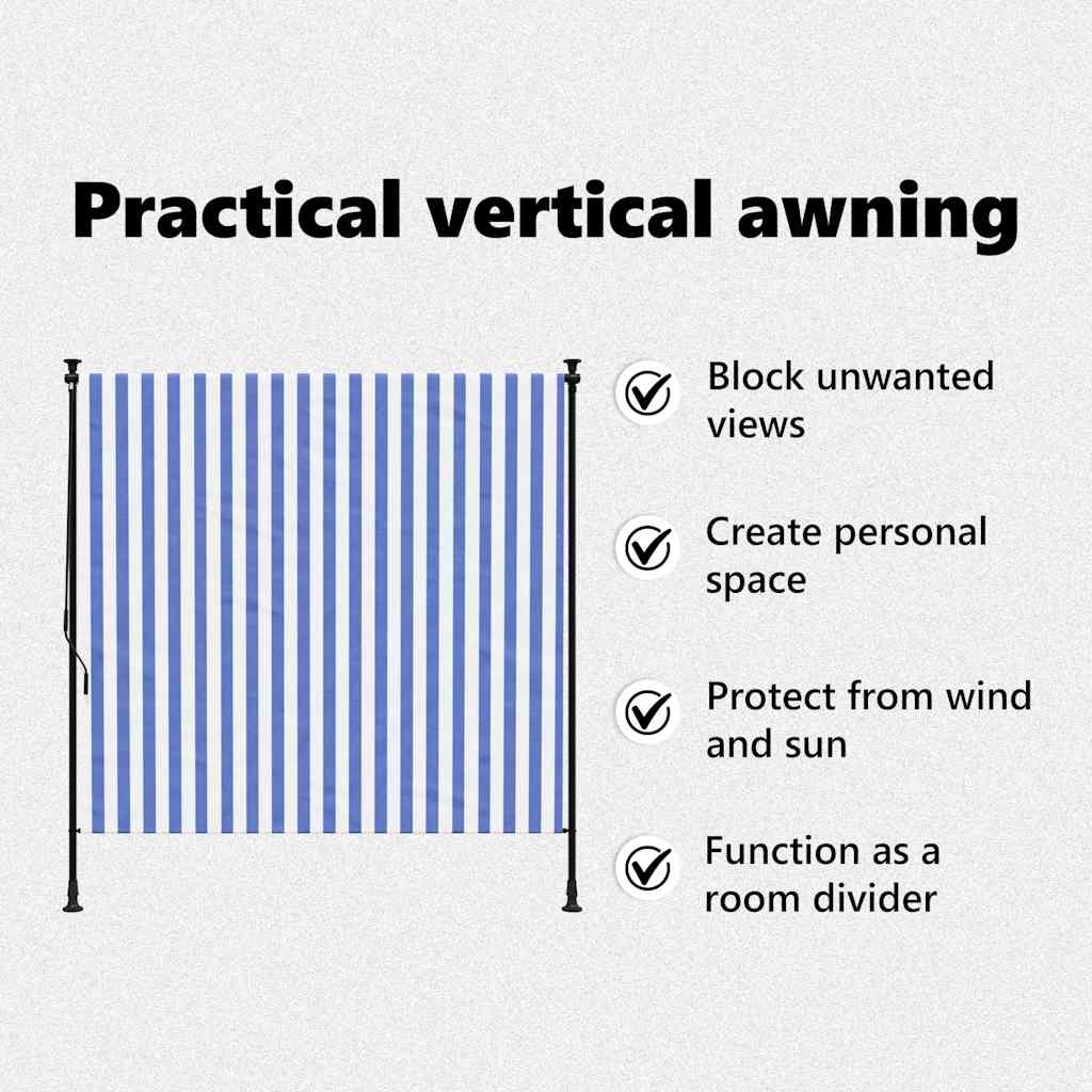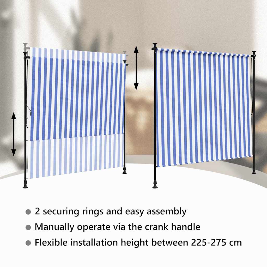 Genieße ein kühles Getränk, eine Leckerei oder ein gutes Gespräch mit Freunden auf deiner Terrasse, während du dich hinter diesem Außenrollo entspannst! Langlebiges Material: Der Rahmen des Sichtschutzes ist aus Stahl gefertigt, der robust und langlebig ist. Der Stoff mit PU-Beschichtung ist UV-beständig. Das Rollo schützt deine Familie oder Gäste vor UV-Strahlen und blendendem Sonnenlicht. Einziehbar: Dank der Kurbel lässt sich das Rollo je nach Bedarf ein- und ausfahren. Er spendet im ausgefahrenen Zustand kühlenden Schatten und versperrt im eingefahrenen Zustand nicht die Sicht. Einstellbare Höhe: Die Höhe der Stützstangen kann zwischen 225 und 275 cm eingestellt werden, sodass es für verschiedene Deckenhöhen geeignet ist. Vielseitig einsetzbar: Das Außenrollo zeichnet sich durch ein schlichtes, stilvolles Design aus, das sich harmonisch in dein Zuhause oder in Geschäftsräume einfügt. Es lässt sich in den unterschiedlichsten Bereichen einsetzen, sei es auf Balkonen, Terrassen, in Gärten, Restaurants, Cafés oder Geschäften.