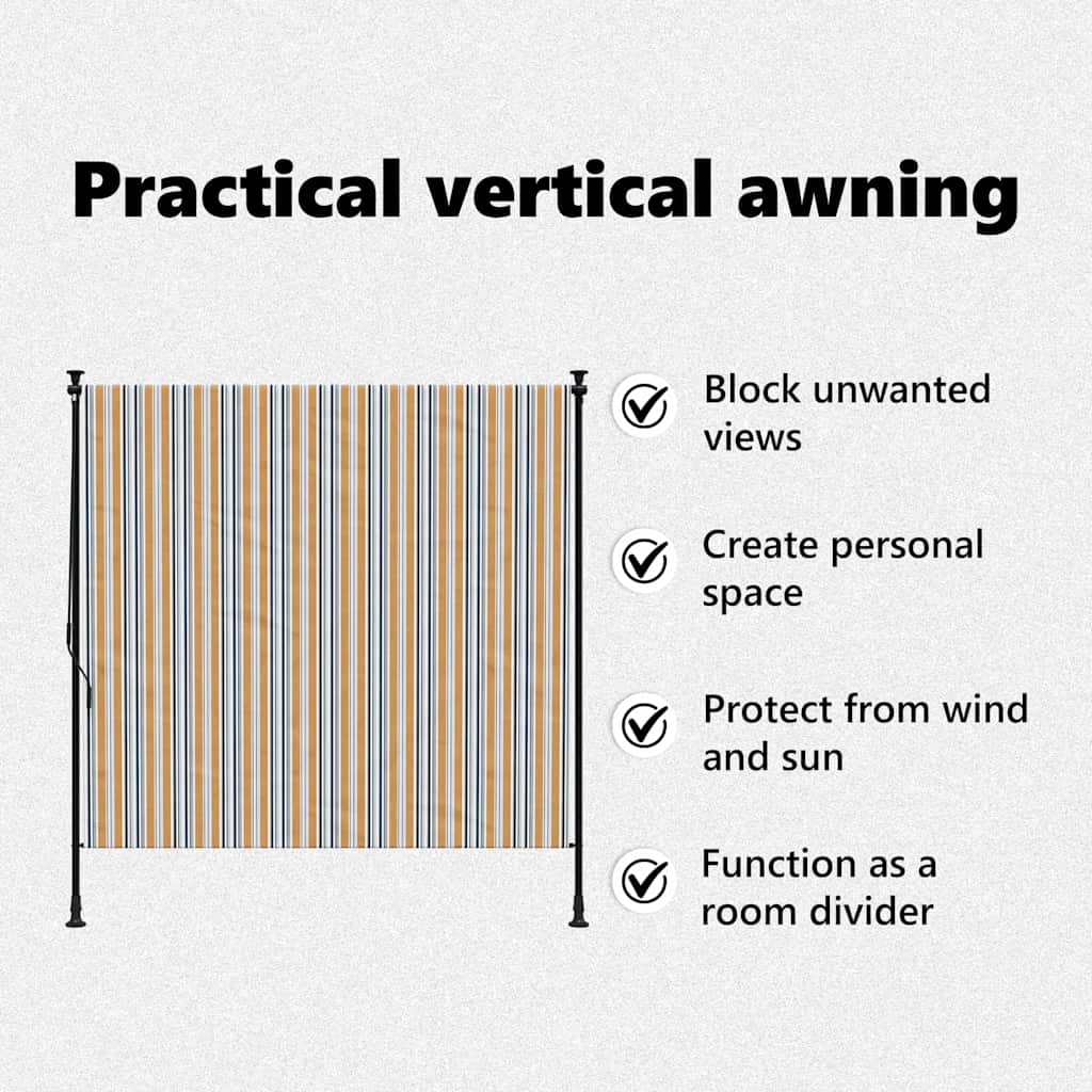 Genieße ein kühles Getränk, eine Leckerei oder ein gutes Gespräch mit Freunden auf deiner Terrasse, während du dich hinter diesem Außenrollo entspannst! Langlebiges Material: Der Rahmen des Sichtschutzes ist aus Stahl gefertigt, der robust und langlebig ist. Der Stoff mit PU-Beschichtung ist UV-beständig. Das Rollo schützt deine Familie oder Gäste vor UV-Strahlen und blendendem Sonnenlicht. Einziehbar: Dank der Kurbel lässt sich das Rollo je nach Bedarf ein- und ausfahren. Er spendet im ausgefahrenen Zustand kühlenden Schatten und versperrt im eingefahrenen Zustand nicht die Sicht. Einstellbare Höhe: Die Höhe der Stützstangen kann zwischen 225 und 275 cm eingestellt werden, sodass es für verschiedene Deckenhöhen geeignet ist. Vielseitig einsetzbar: Das Außenrollo zeichnet sich durch ein schlichtes, stilvolles Design aus, das sich harmonisch in dein Zuhause oder in Geschäftsräume einfügt. Es lässt sich in den unterschiedlichsten Bereichen einsetzen, sei es auf Balkonen, Terrassen, in Gärten, Restaurants, Cafés oder Geschäften.