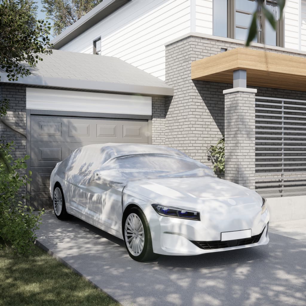 Diese Halbgarage schützt dein Fahrzeug vor UV-Strahlen, Schnee, Regen, Frost, Staub, Laub, industrieller Verschmutzung und Vogelkot und eignet sich ideal für den Innen- und Außenbereich. Allwetterschutz: Diese Autoschutzhülle besteht aus atmungsaktivem Polyester mit PU-Beschichtung und ist somit das ganze Jahr über wasserdicht und UV-beständig. Die Doppelnähte erhöhen ihre Festigkeit und Haltbarkeit.Silberbeschichtung zur Wärmeisolierung: Die silberne Oberfläche der Autoplane reflektiert mehr Sonnenlicht und UV-Strahlen und hält dein Auto bei heißem Wetter kühler. Dies schützt den Innenraum deines Autos vor Hitzeschäden.Winddichtes Design: Mit den Gummibändern mit Haken lässt sich die Autoabdeckung sicher an Radnaben und Fahrgestell befestigen, um das Wegwehen bei Wind zu verhindern.Einfache Lagerung: Diese Autoschutzhülle wird samt einer praktischen Aufbewahrungstasche geliefert, in der sie sich bei Nichtgebrauch leicht verstauen lässt. Gut zu wissen:Bitte nimm vor dem Erwerb genaue Messungen deines Autos vor, um sicherzustellen, dass du die richtige Größe auswählst.