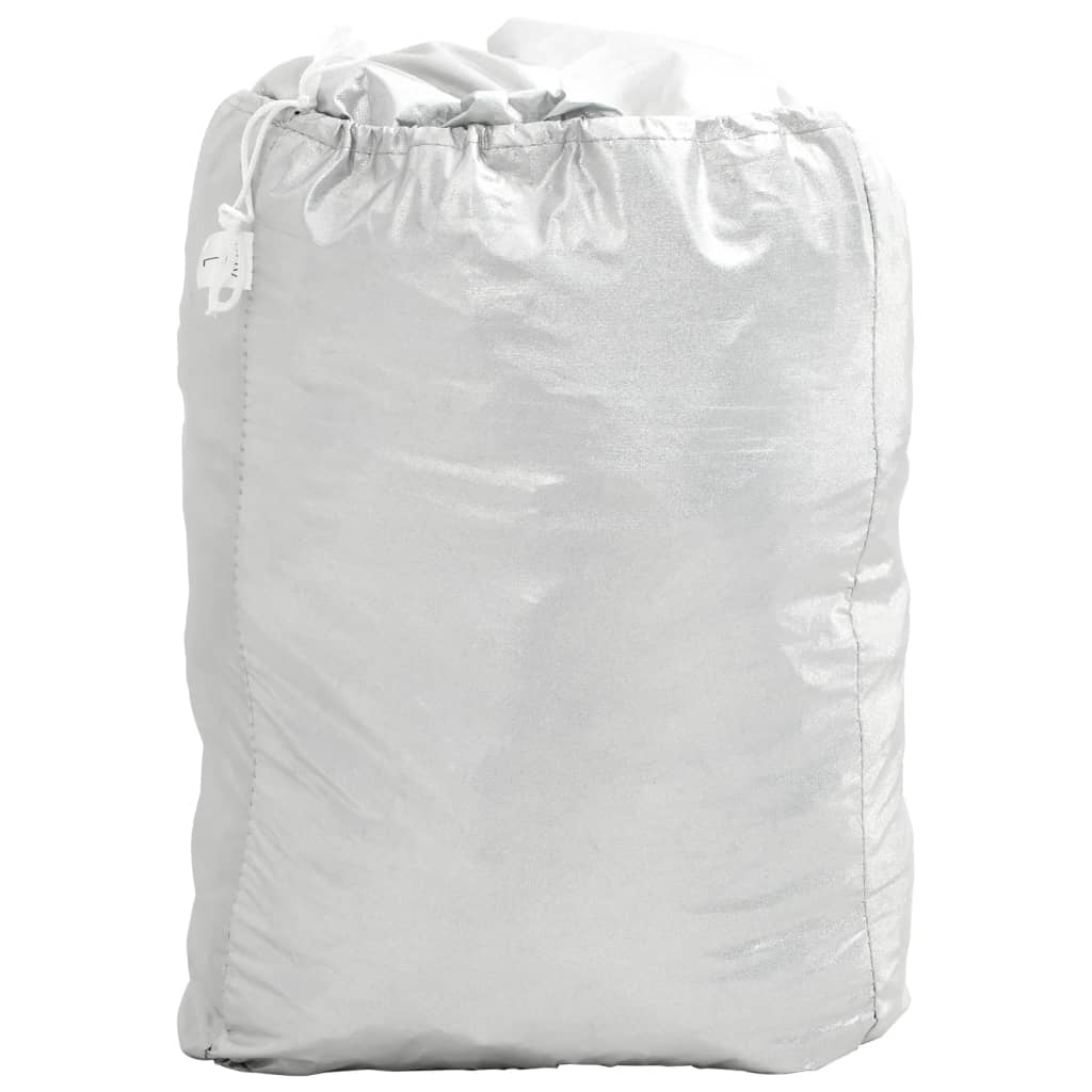 Diese Halbgarage schützt dein Fahrzeug vor UV-Strahlen, Kratzern, Schnee, Regen, Frost, Staub, Laub, industrieller Verschmutzung und Vogelkot und eignet sich ideal für den Innen- und Außenbereich. Mehrschicht-Material: Die Autoabdeckung besteht aus drei Schichten: Aluminiumfolie, PEVA und weicher Baumwolle und bietet dadurch einen hervorragenden Schutz vor Wasser, Staub, UV-Strahlen und Kratzern.Silberbeschichtung zur Wärmeisolierung: Die silberne Oberfläche der Autoplane reflektiert mehr Sonnenlicht und UV-Strahlen und hält dein Auto bei heißem Wetter kühler. Dies schützt den Innenraum deines Autos vor Hitzeschäden.Winddichtes Design: Mit den Gummibändern mit Haken lässt sich die Autoabdeckung sicher an Radnaben und Fahrgestell befestigen, um das Wegwehen bei Wind zu verhindern.Einfache Lagerung: Diese Autoschutzhülle wird samt einer praktischen Aufbewahrungstasche geliefert, in der sie sich bei Nichtgebrauch leicht verstauen lässt. Gut zu wissen:Bitte nimm vor dem Erwerb genaue Messungen deines Autos vor, um sicherzustellen, dass du die richtige Größe auswählst.