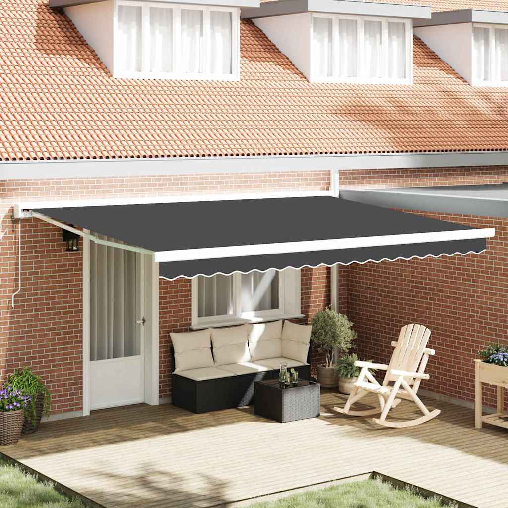 Pepp die Außengestaltung mit der vidaXL Automatischen Einziehbaren Markise auf, die dafür gemacht ist, dich an sonnigen Tagen oder bei leichtem Regen im Schatten und bequem zu halten. Diese Markise hat ein glattes anthrazitgraues Finish und ist aus robustem Polyester und Aluminium gefertigt, damit sie lange hält. Mit ihrem verstellbaren Winkel und dem einziehbaren Design passt sie auch gut zu verschiedenen Terrassengrößen.