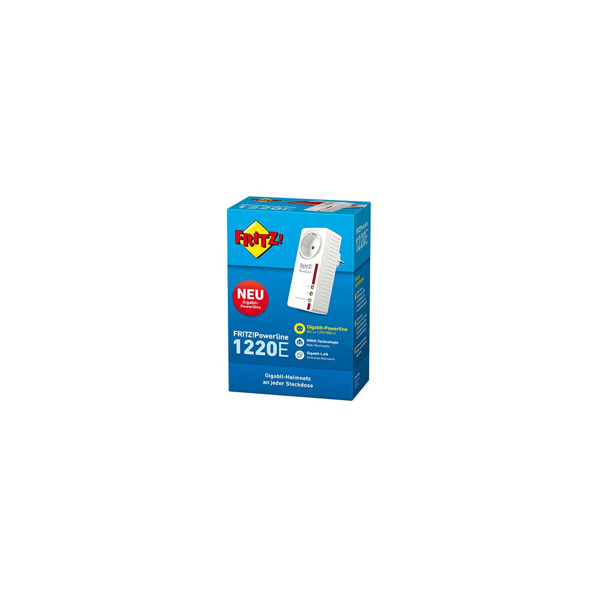 Lieferumfang: 1 x Fritz Powerline 1220e, 1 x 1,80 m Netzwerkkabel, Kurzanleitung