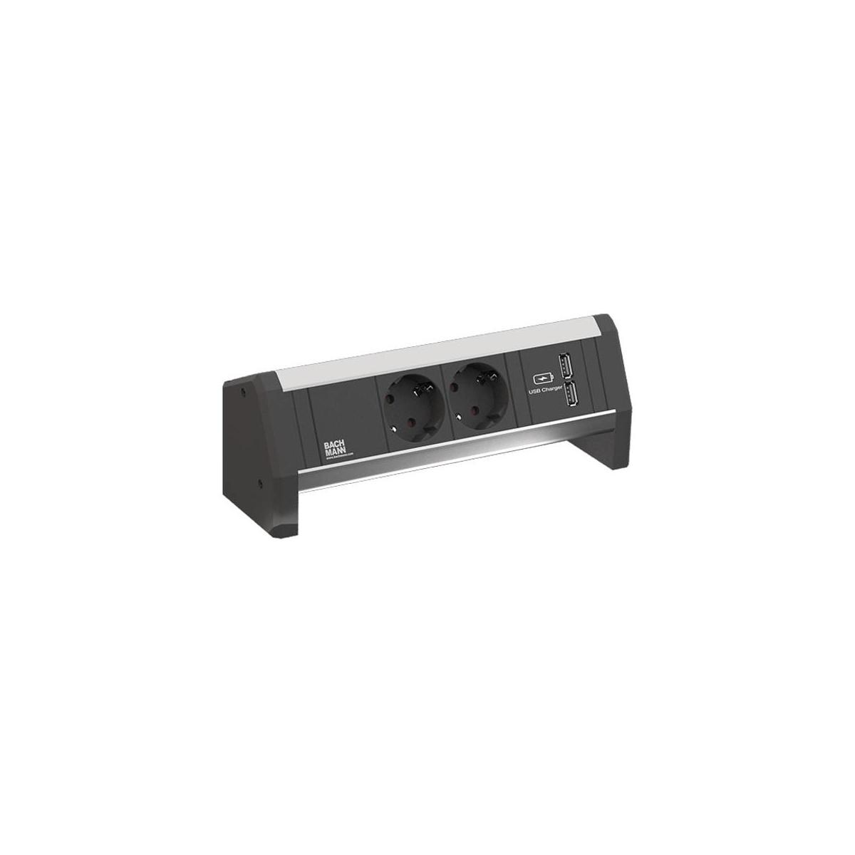 DESK ALU Steckdosenleiste mit erhöhtem Berührungsschutz, 2xSchutzkontaktsteckdosen schwarz 1xUSB Doppelcharger 5V DC / 3,1A USB 2.0 Charger 5V 3,1A Stromeingang und -ausgang GST18 im Karton.
