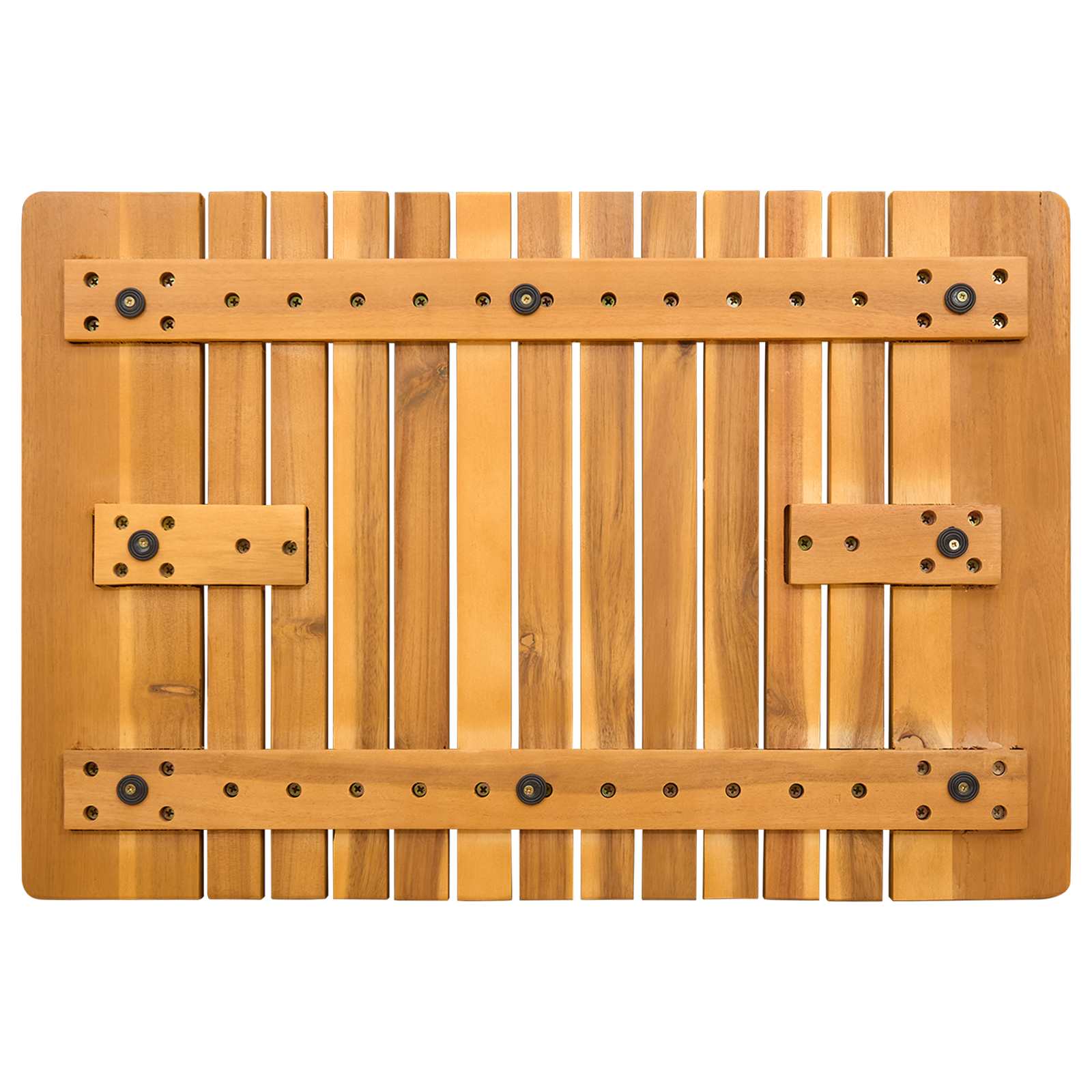 Diese schicke Holzbadematte verwandelt dein Bad in eine minimalistische Oase und bringt sowohl Stil als auch Funktion mit. Ihre glatte Oberfläche und das schlichte Design fügen sich harmonisch in jede Einrichtung ein und sorgen dafür, dass du sicher und komfortabel stehst. Natürliche Holzbauweise: Die Matte ist komplett aus Holz und bringt eine warme, natürliche Note in dein Zuhause. Das geölte Finish hebt die Holzfarbtöne hervor und schützt gegen Feuchtigkeit ? perfekt für moderne Bäder oder Balkone. Umfassende Belüftung: Durch das belüftete Design wird die Luftzirkulation gefördert, was Schimmelbildung reduziert und dafür sorgt, dass die Matte nach der Benutzung schnell trocknet. So bleibt dein Bad frisch und schön. Benutzerfreundliche Wartung: Die glatte Oberfläche der Matte ist ganz leicht zu reinigen. Einfach mit einem feuchten Tuch abwischen; so bleibt sie sauber und frisch. Achte darauf, scharfe Chemikalien und kräftiges Reiben zu vermeiden. Rutschfeste Sicherheit: Die rutschfeste Unterseite sorgt für Stabilität auf nassen Flächen und gibt dir das gute Gefühl, dass du sicher stehst. Ideal für Familien mit Kindern oder älteren Menschen, die in nassen Umgebungen sicher sein wollen. Vielseitige Nutzung innen & außen: Die Matte ist für drinnen und draußen geeignet und bietet dir viele Gestaltungsmöglichkeiten. Perfekt für Bäder, Terrassen und Balkone, die Stil und Funktionalität bringen.