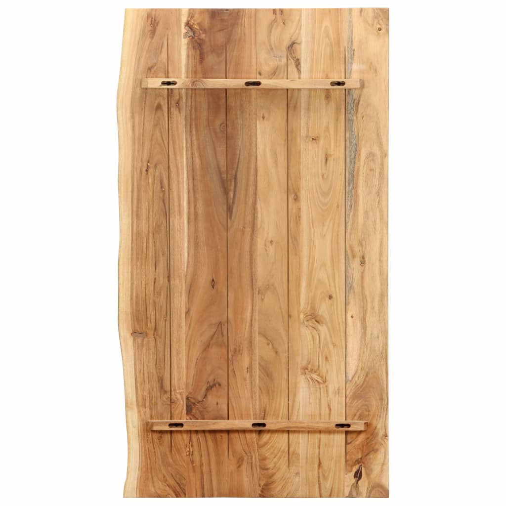 Die Massivholz-Waschtischplatte ist eine preisgünstige Möglichkeit, Ihrem Bad einen rustikalen Charme zu verleihen. Die Arbeitsplatte kann als Ergänzung zu Ihrem Waschtisch oder als schwebende Arbeitsplatte verwendet werden. Diese Waschtischplatte besteht aus massivem Akazienholz, einem tropischen Hartholz, das dicht, robust und langlebig ist. Das massive Akazienholz ist poliert, gestrichen und lasiert und dadurch feuchtigkeitsbeständig. Die Arbeitsplatte ist aus einem einzigen Baumstamm gefertigt und verfügt über eine natürliche Baumkante, welche die Schönheit des Holzes hervorhebt. Jede Waschtischplatte ist ein Unikat. Maserung und Baumkante können leicht variieren.