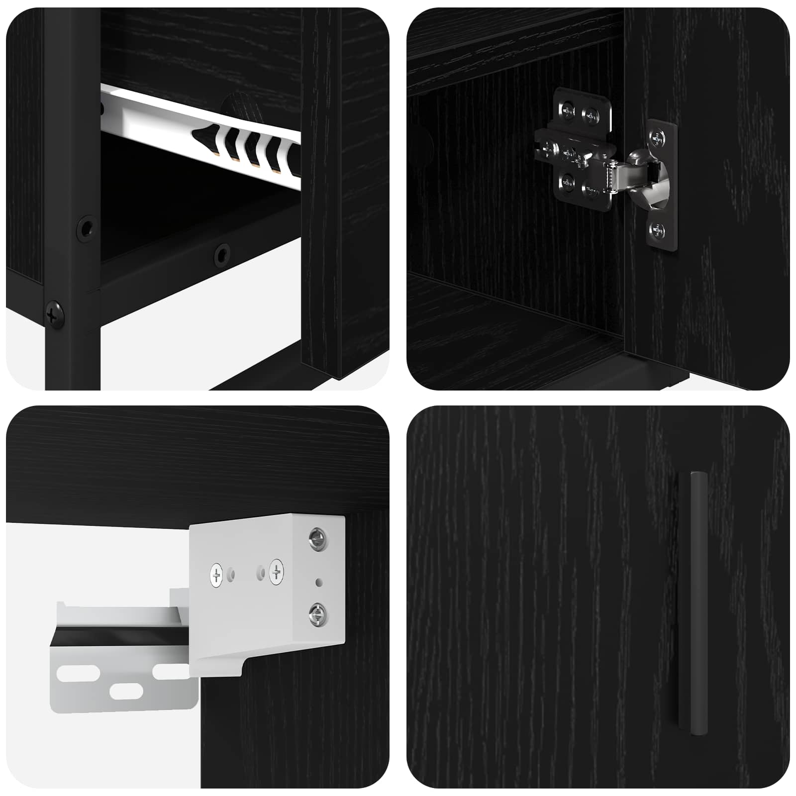 Dieses Holz-Badezimmermöbel-Set kombiniert modernen Stil mit praktischem Nutzen und ist eine super Wahl für jedes Badezimmer. Die elegante, rechteckige Form und der zeitgemäße Touch geben deinem Raum ein stylisches Upgrade. Hergestellt aus Holzwerkstoff und stabilen Metallteilen, steht es für dauerhafte Qualität. Das wandmontierte Design sorgt für mehr Platz auf dem Boden, ideal für kleine und große Bäder. Mit viel Stauraum, der gut aussieht, passt dieses Set in verschiedene Einrichtungsstile und verleiht deinem Raum das besondere Etwas. Eisen gefertigt: Das Hauptmaterial ist Holzwerkstoff, stark und langlebig. Es ist umweltfreundlich und hat eine glatte Oberfläche, die modern aussieht. Es verzieht oder splittert weniger als normales Holz und sorgt dafür, dass dein Badezimmermöbelset lange hält.,Eisen Griffe: Dieses Set hat robuste Eisengriffe, die einen stylishen und praktischen Akzent setzen. Sie erlauben einfachen Zugriff und sehen dabei ordentlich und minimalistisch aus ? perfekt für moderne Styles. Die Griffe sind langlebig und dafür gemacht, lange zu halten.,Schwarzer Metallrahmen: Der stabile Metallrahmen macht das Möbelset nicht nur stabil, sondern sieht dank des schwarzen Finishs auch schick aus und bringt einen Hauch von Klasse. Der Rahmen erhöht die Stabilität und sorgt für einen tollen Kontrast, der in modernen Haushalten glänzt. Die Robustheit des Metalls garantiert solidatr Unterstützung.,Bündiges Türdesign: Die bündigen Türen machen das Set leicht zu reinigen und verleihen ihm ein poliertes Aussehen. Die bündigen Türen sorgen für eine harmonische Optik und machen es zu einer eleganten, aber praktischen Ergänzung. Neben dem guten Aussehen bieten sie eine moderne Möglichkeit für den einfachen Zugriff auf den Stauraum.,Pflege- und Wartungstipps: Wische dein Badezimmermöbelset einfach gelegentlich mit einem feuchten Tuch ab, damit es top aussieht. Diese einfache Pflege hilft, Staub und Schmutz fernzuhalten, sodass dein Möbelset frisch und funktional bleibt. Vermeide starke Chemikalien, um das Material und das Finish nicht zu schädigen.