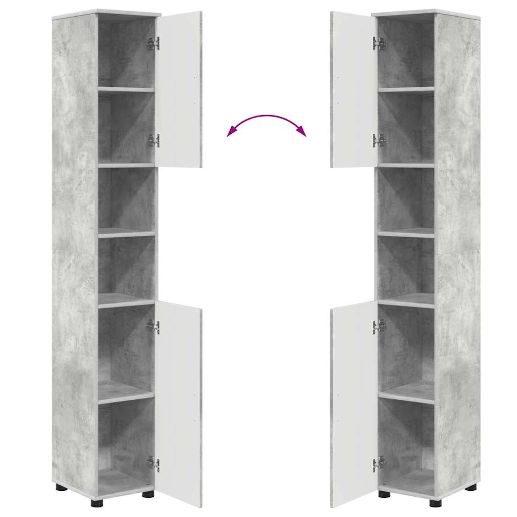 - 1 x Waschbeckenunterschrank, 1 x Spiegelschrank, 1 x Badschrank (niedrig), 1 x Badschrank (hoch)