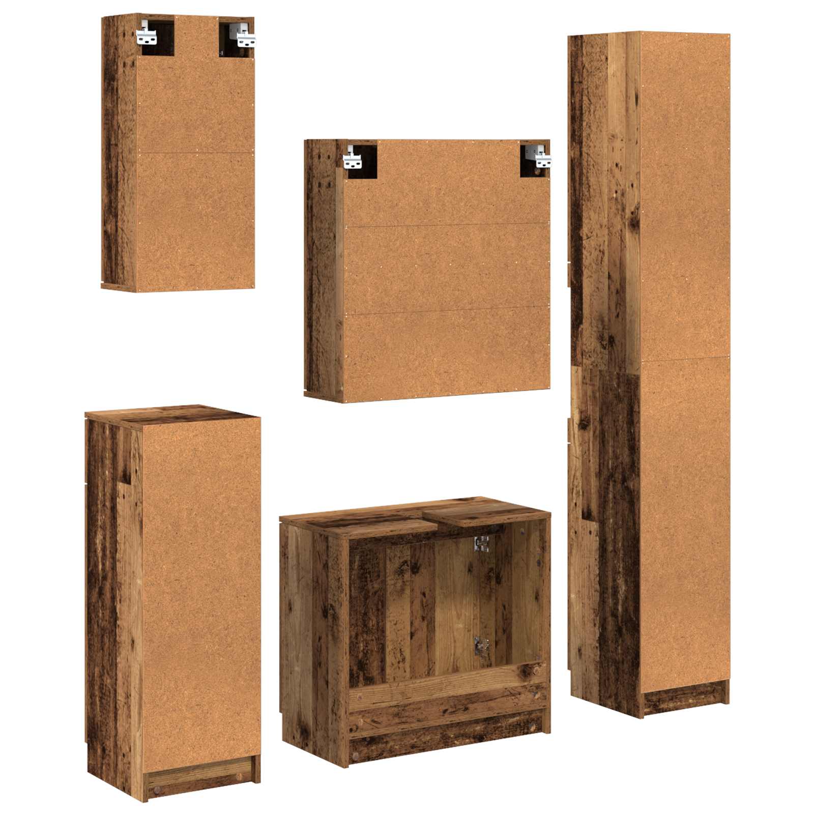Das 5-teilige Badezimmer-Schrankset bietet dir praktische Lösungen und sieht dabei auch noch gut aus. Seine rechteckige Form und klaren Linien passen perfekt in jedes moderne Badezimmer. Es verwandelt deinen Raum in ein gut organisiertes und stilvolles Ambiente, indem es schlichtes Design und Funktionalität kombiniert und alles aus robustem Holzwerkstoff hergestellt ist, damit es lange hält. Materialien: Aus Holzwerkstoff gefertigt, bietet dieses Badezimmer-Set Stabilität und ist gleichzeitig elegant. Die glatte Oberfläche sorgt für einen Hauch von Stil und macht es leicht, schön zu bleiben. Holzwerkstoff hält viel aus und sieht mit wenig Pflege toll aus. Enthaltene Komponenten: Das Set enthält einen Waschschrank (64,5 x 33,5 x 59 cm), einen Spiegelschrank (64 x 20 x 66,5 cm), zwei verschiedene Badezimmer-Schränke und einen hohen Wandschrank (32 x 33,5 x 188,5 cm). Jedes Stück ist speziell für bestimmte Aufbewahrungsbedürfnisse designt und sorgt dafür, dass du den Raum optimal nutzen kannst. Merkmale/Funktion/Design: Dieses Set ist clever gestaltet und bietet dir viel Stauraum durch Fächer, Schubladen und Regale. Die unterschiedlichen Größen der Schränke erleichtern es, sie in verschiedenen Raumlayouts zu nutzen und perfekt zu integrieren. Das Design ist modern und minimalistisch gehalten. Empfohlene Anwendungen: Ideal für dein Badezimmer, bietet das Set Platz für Handtücher, Toilettenartikel und Pflegeprodukte. Es ist perfekt für Haushalte, die es ordentlich und stilvoll im Bad mögen. Pflege & Wartung: Halte das Set einfach sauber, indem du es mit einem trockenen Tuch abwischst. So bleibt die Holzoberfläche schön und alles sieht länger gut aus. Weniger Aufwand heißt mehr Zeit für dich und einfachere Pflege.