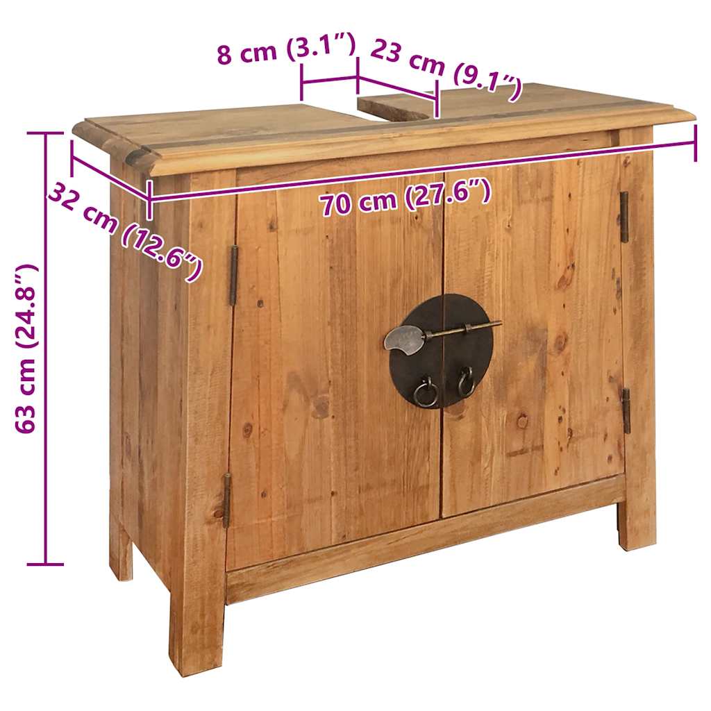 Dieses Badmöbel-Set aus Holz im Retro-Stil verleiht deinem Badezimmer einen Hauch von rustikalem Charme. Der robuste und langlebige Waschtischunterschrank und der Spiegelrahmen wurden aus massivem Kiefernholz gefertigt. Die Handwerkskunst trägt zum Vintage-Stil bei. Die Montage ist einfach. Die Lieferung umfasst 1 Waschtischunterschrank und 1 Spiegel. Wichtiger Hinweis: Farbe und Holzmaserung können von Artikel zu Artikel variieren, wodurch jedes Möbelstück einzigartig ist. Die Lieferung erfolgt nach dem Zufallsprinzip, wodurch die Exklusivität und Individualität deines Produkts gewährleistet wird.
