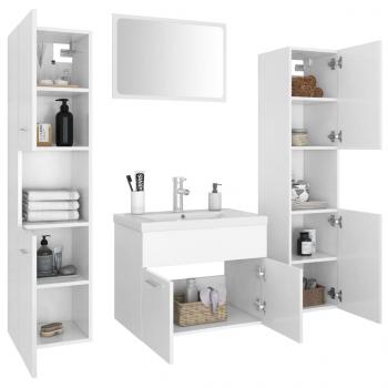 Mit diesem stilvollen Badmöbel-Set schaffen Sie zusätzlichen Stauraum in Ihrem Badezimmer. Die klaren Linien und das schlichte Design fügen sich perfekt in Ihr Bad ein. Das Möbelset besteht aus einem Waschbeckenunterschrank, 2 Hochschränken und einem Spiegel. Der schicke Waschbeckenunterschrank verfügt über 1 Fach und bietet den idealen Platz für Ihr Waschbecken, während die Hochschränke mit je 5 Fächern und je 2 Türen versehen sind und dadurch reichlich Platz zum Verstauen verschiedener Sachen im Badezimmer zur Verfügung stellen. Der Spiegel macht auch eine gute Figur in Ihrer Inneneinrichtung. Darüber hinaus lässt sich dieses Badmöbel-Set mit einem feuchten Tuch einfach reinigen. Bitte beachten Sie: Das Waschbecken, der Wasserhahn und die Ablaufgarnitur sind nicht im Lieferumfang enthalten.