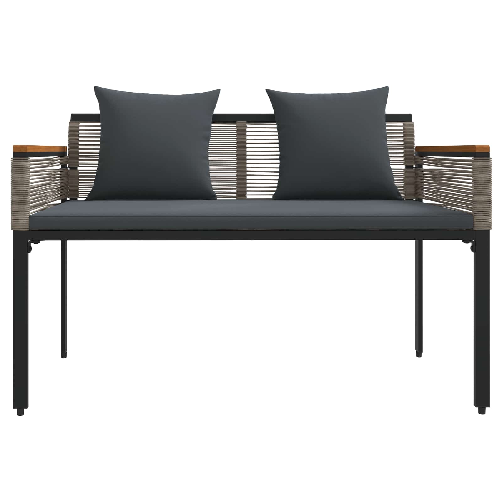 Diese rustikale Outdoor-Bank ist richtig schick gemacht und peppt jeden Garten oder jede Terrasse auf. Sie sieht robust aus dank Poly-Rattan und pulverbeschichtetem Stahl und bringt den natürlichen Charme nach draußen. Super einladend, genau richtig, um in der Sonne zu entspannen, ruhige Momente zu erleben oder coole Gespräche zu führen. Ihr stylisches Design schafft eine gemütliche Atmosphäre und macht Außenbereiche viel einladender. Robuste Materialharmonie: Diese Bank ist aus hochwertigem Poly-Rattan und pulverbeschichtetem Stahl gebaut, damit sie gut mit dem Wetter klarkommt. So bleibt das Finish über die Zeit schön, und sie hält UV-Strahlen und anderen Witterungsbedingungen stand. Durchdachtes Design: Praktisch und stylisch ? die verstellbaren Füße sorgen für stabilen Halt, auch auf unebenen Flächen. Die geschnitzten Holzarmlehnen bieten nicht nur schicken Look, sondern auch Komfort und einen Hauch traditioneller Handwerkskunst. Praktische Funktionalität: Das abnehmbare Boxkissen mit Reißverschluss sorgt für Gemütlichkeit und einfache Reinigung. Die strukturierte Sitzfläche ist ideal für alles Mögliche, von entspannten Nachmittagen bis zu gemeinsamen Mahlzeiten im Freien. Adaptiver Außeneinsatz: Diese Bank passt sich überall an, sei es im Garten, auf der Terrasse oder der Patio. Sie ist UV-beständig, was sie zur besten Wahl für sonnige Plätze macht und ihre Schönheit über die Zeit bewahrt. Wartung und Pflege: Um die Bank immer schön zu halten, deckst du sie ab, wenn sie nicht benutzt wird, schütze sie vor extremem Wetter und reinige sie mit einem trockenen Tuch. Benutze keine scharfen Chemikalien, um das glänzende Finish und die robuste Bauweise lange zu erhalten.