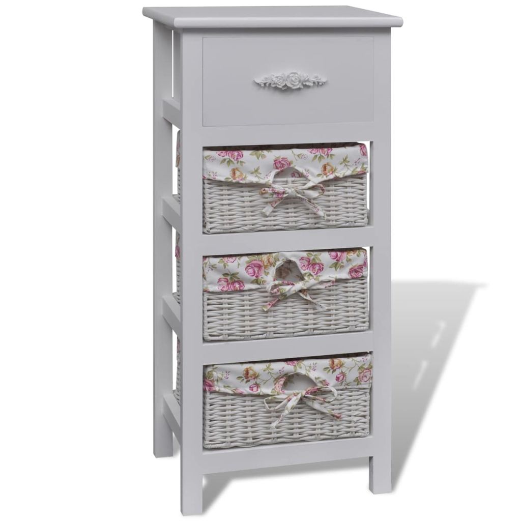 Dieses atemberaubende Korb-Regal aus Holz hat ein einfaches, aber stilvolles Design. Es bietet nicht nur Platz für deine Sachen, sondern verleiht deiner Einrichtung auch eine einzigartige Note. Mit einer Schublade und drei Körben ausgestattet, bietet dieses robuste Holzschränkchen ausreichend Platz für die Aufbewahrung deiner Sachen. Der Holzrahmen ist mit einer robusten Oberplatte versehen, auf der du Dekoartikel platzieren kannst. Der Holzschrank wird in jedem Raum zum Hingucker. Achtung: Um ein Umkippen zu vermeiden, sollte dieses Produkt mit der mitgelieferten Wandhalterung gesichert werden.