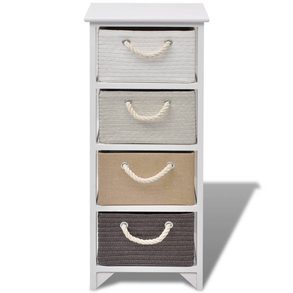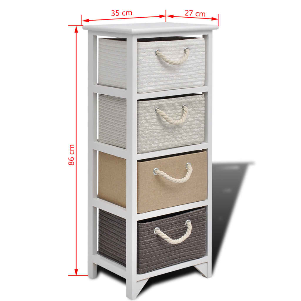 Verleihe deinem Zuhause einen Hauch von rustikalem Charme mit diesem einfachen, aber stilvollen Aufbewahrungsmöbel! Dieser Beistellschrank verfügt über 4 Schubladen, die ausreichend Platz bieten, um kleinere Gegenstände organisiert und griffbereit aufzubewahren. Die Schubladen mit Schnur-Griff zeugen vom Landhausstil. Die Schubladen sind untereinander austauschbar. Das Beistellmöbel kann auch als Schubladenkommode, Flurschrank, Beistellschrank, Beistelltisch, Nachtkommode usw. verwendet werden.