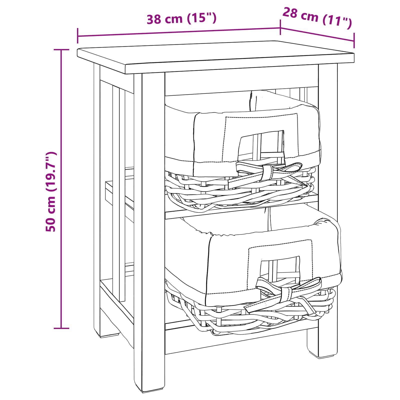 - Gesamtabmessungen: 38 x 28 x 50 cm (L x B x H)