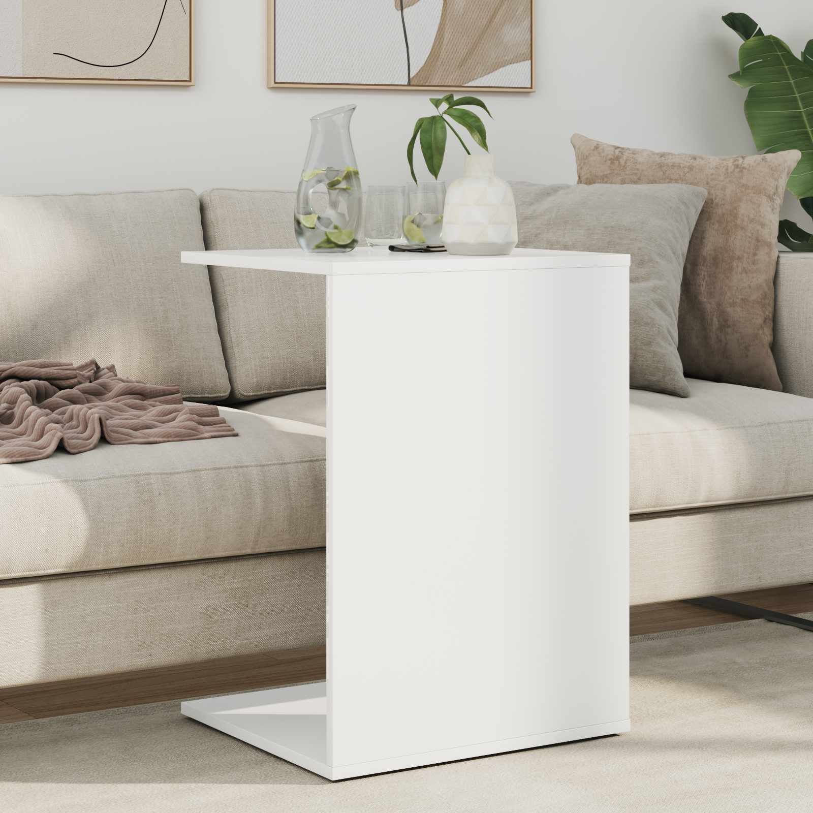 Dieser moderne Beistelltisch ist eine schicke und praktische Ergänzung für dein Zuhause. Sein elegantes Design mit klaren Linien und rechteckiger Form passt perfekt in jedes Wohnzimmer. Er ist ideal für kleine Räume und bietet Platz für Lampen, Getränke oder Deko ? und fügt sich super in jeden modernen Stil ein. Egal, ob neben einem Sofa oder einem Sessel, alles Essentielle ist immer griffbereit. Materialien: Der Beistelltisch ist aus Holzwerkstoff, der robust ist und durch regelmäßige Nutzung nicht ansehnlich wird. Das sorgt für eine tolle Langlebigkeit und das schicke Aussehen bleibt erhalten. Holzwerkstoff wurde wegen seiner Stärke und dauerhaften Qualität ausgewählt und bietet eine super Kombination für Möbel im Innenbereich. Enthaltene Komponenten: Er hat einen stylischen Rücken, somit kannst du ihn überall im Raum einsetzen, ohne dir Gedanken über unschöne Kanten machen zu müssen. Egal ob an einer Wand oder freistehend, er sieht von jedem Blickwinkel toll aus. Merkmale / Funktion / Design: Der Tisch hat ein haltbares Design und bietet anhaltende Stärke und sieht dabei stylish aus. Er bietet eine solide Unterstützung für alles, was du draufstellen möchtest, und wertet den Raum echt auf. Sein moderner Stil passt super zu vielen verschiedenen Deko-Ideen. Empfohlene Anwendungen: Der Beistelltisch ist perfekt für deinen Wohnbereich. Er kann Lampen, Bücher, Getränke oder Deko tragen. Egal ob für Ordnung oder einfach für die Atmosphäre, er passt in viele Lebenssituationen und Vorlieben im Zuhause. Pflege & Wartung: Halte ihn schön, indem du bei der Reinigung keine scharfen Chemikalien und rauen Materialien verwendest. Die Montage macht man am besten zu zweit mit einem Schraubendreher. Befolge einfach die Anleitung des Herstellers, so sicherst du die Lebensdauer und Nützlichkeit des Tisches.
