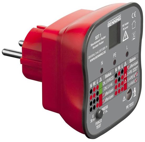 Einfache und schnelle Prüfung von Schutzkontaktsteckdosen, Kabeltrommeln und Verlängerungsleitungen auf korrekten Anschluss. Vorhandene Verdrahtungsfehler und unzulässig hohe Berührungsspannungen am Schutzleiteranschluss (PE) werden direkt angezeigt. Zusätzlich kann die Auslösefunktion eines 30 mA Fehlerstrom-Schutzschalters (FI/RCD) durch Betätigung der FI/RCD-Taste überprüft werden.