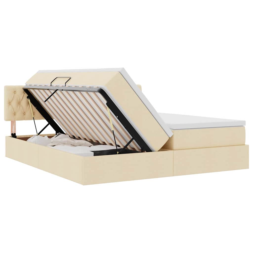 Preview: Bett mit LED-Lichtleisten mit Kopfteil Creme 180 x 200 cm Stoff