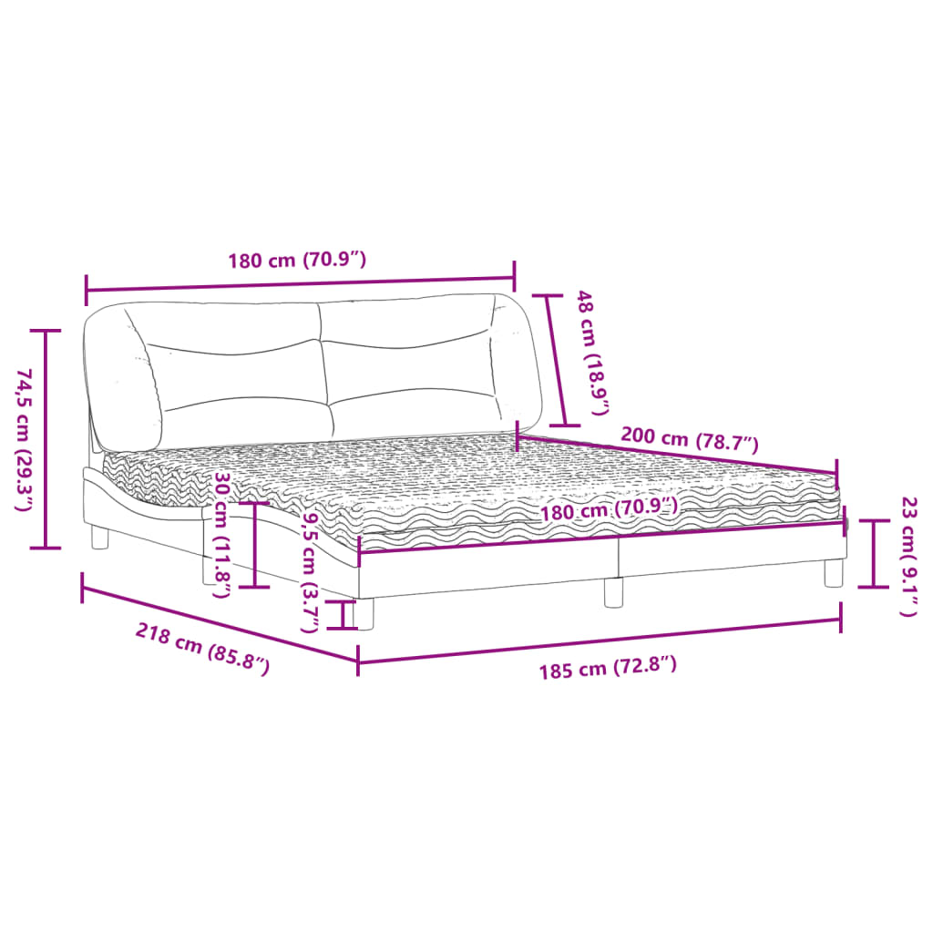 In diesem Bett mit Matratze genießt du einen besseren, erholsameren Schlaf! Es ist eine einladende Ergänzung zu jedem Schlafzimmer. Strapazierfähiger Stoff: Der Stoff weist eine schlichte und saubere Optik auf und ist außerdem atmungsaktiv und langlebig.Sperrholzlatten: Die Sperrholzlatten sorgen für eine gute Gewichtsverteilung und auch dafür, dass die Matratze bei jeder Bewegung deines Körpers während des Schlafes an Ort und Stelle bleibt.Hervorragende Unterstützung: Das Bett-Kopfteil bietet dir eine hervorragende Unterstützung, während du im Bett sitzt, um zu lesen oder fernzusehen.Schaumstoffmatratze: Die Bettmatratze besteht aus 3 Schichten und ist mit 22D PU-Schaumstoff gefüllt, um optimalen Komfort zu bieten. Sie lindert Müdigkeit und fördert die Blutzirkulation, um für vollständige Entspannung und einen guten Schlaf nach einem langen Tag zu sorgen. Zudem besitzt die Matratze die Härtegrade H2 und H3, sodass du durch einfaches Wenden der Matratze den Härtegrad wählen kannst, der deinen Anforderungen bestens entspricht.Wellenförmiges Seitendesign: Das stilvolle und raffinierte Design in Wellenform verleiht deiner Einrichtung eine moderne und elegante Note und macht das Bettgestell zum Mittelpunkt deines Schlafzimmers.