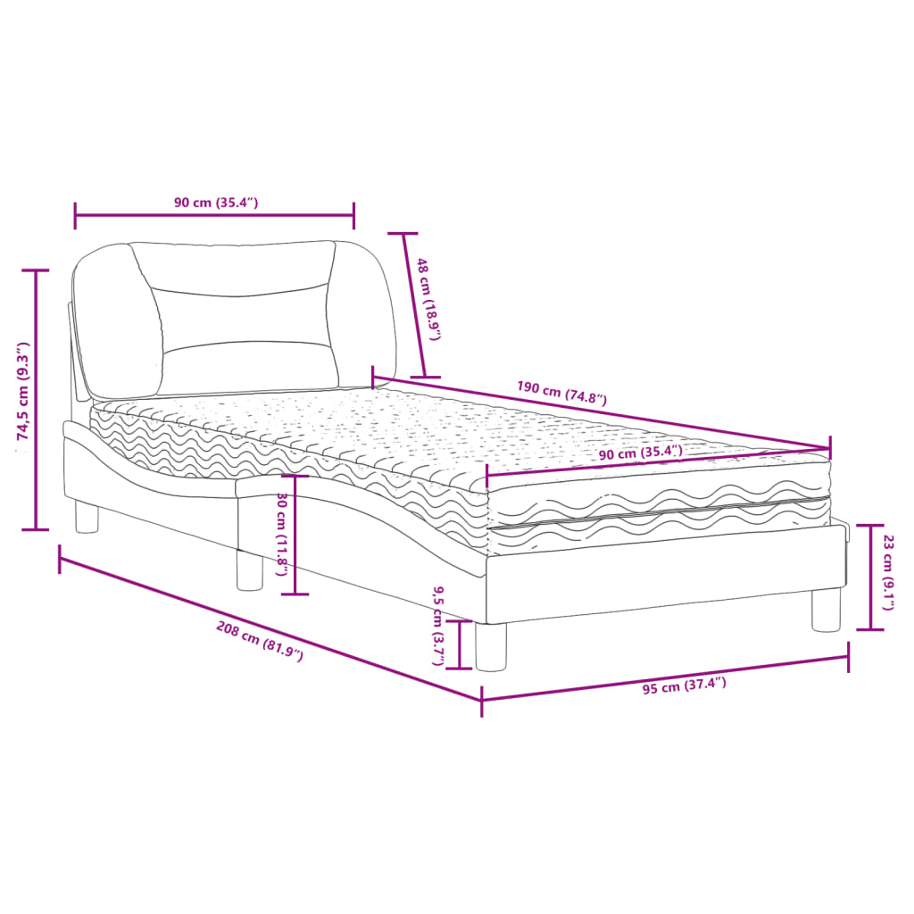 In diesem Bett mit Matratze genießt du einen besseren, erholsameren Schlaf! Es ist eine einladende Ergänzung zu jedem Schlafzimmer. Strapazierfähiger Stoff: Der Stoff weist eine schlichte und saubere Optik auf und ist außerdem atmungsaktiv und langlebig.Sperrholzlatten: Die Sperrholzlatten sorgen für eine gute Gewichtsverteilung und auch dafür, dass die Matratze bei jeder Bewegung deines Körpers während des Schlafes an Ort und Stelle bleibt.Hervorragende Unterstützung: Das Bett-Kopfteil bietet dir eine hervorragende Unterstützung, während du im Bett sitzt, um zu lesen oder fernzusehen.Schaumstoffmatratze: Die Bettmatratze besteht aus 3 Schichten und ist mit 22D PU-Schaumstoff gefüllt, um optimalen Komfort zu bieten. Sie lindert Müdigkeit und fördert die Blutzirkulation, um für vollständige Entspannung und einen guten Schlaf nach einem langen Tag zu sorgen. Zudem besitzt die Matratze die Härtegrade H2 und H3, sodass du durch einfaches Wenden der Matratze den Härtegrad wählen kannst, der deinen Anforderungen bestens entspricht.Wellenförmiges Seitendesign: Das stilvolle und raffinierte Design in Wellenform verleiht deiner Einrichtung eine moderne und elegante Note und macht das Bettgestell zum Mittelpunkt deines Schlafzimmers.